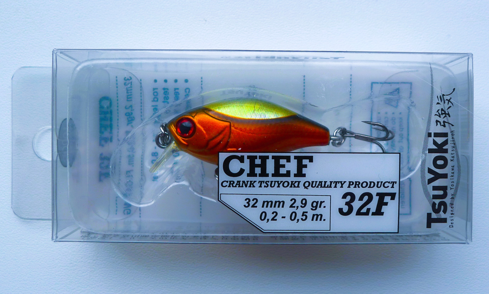С воблерами TsuYoki Chef я познакомился еще в 2020-м году. Этот крэнкбейт в размере 38мм стал моим первым воблером от этой марки. С тех пор я начал периодически покупать некоторые модели данной компании. И вот спустя почти шесть лет, обзавелся еще одним «Шефом», только размерами поменьше - 32мм, за что и зову его «Помощником шефа»)).