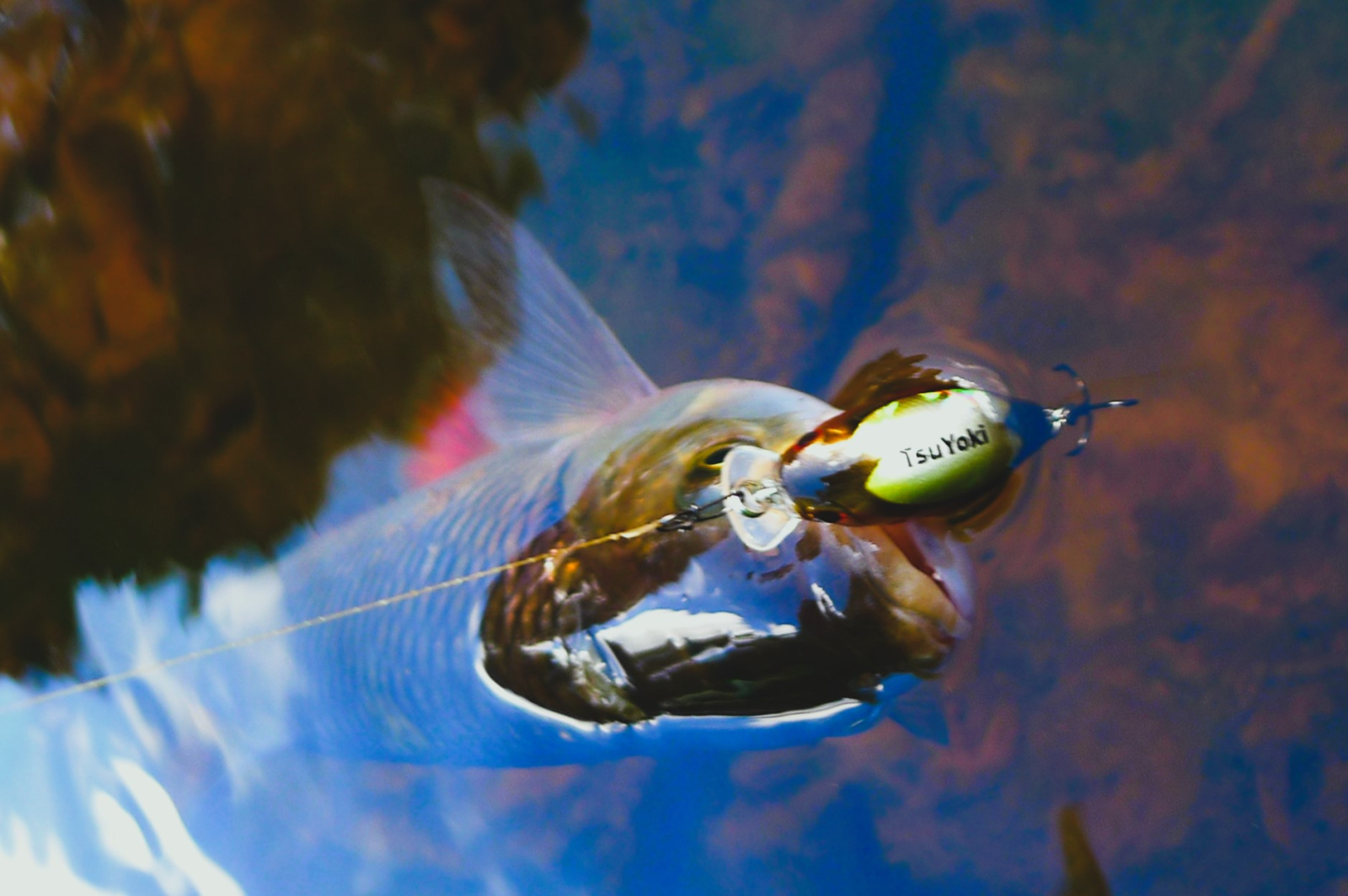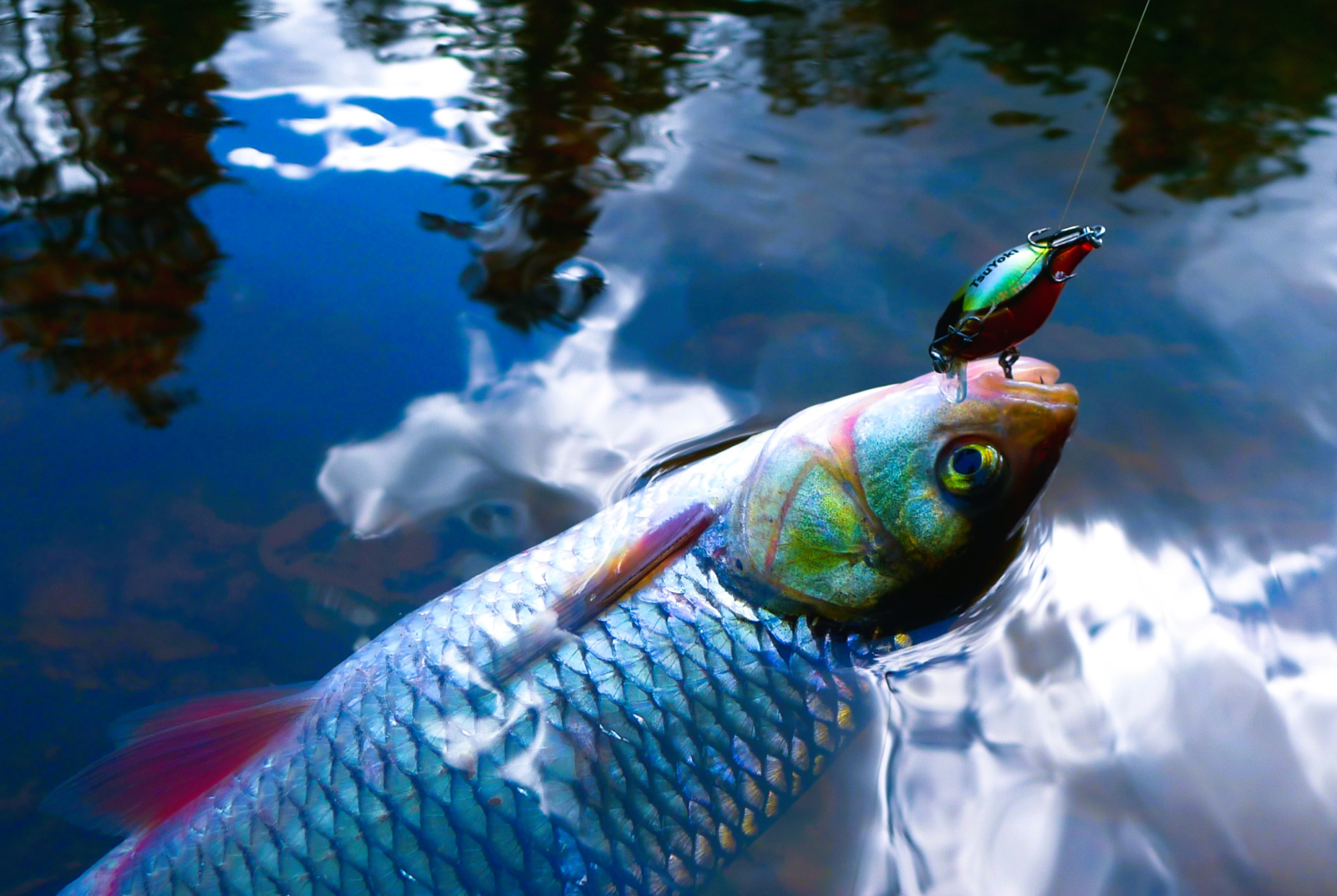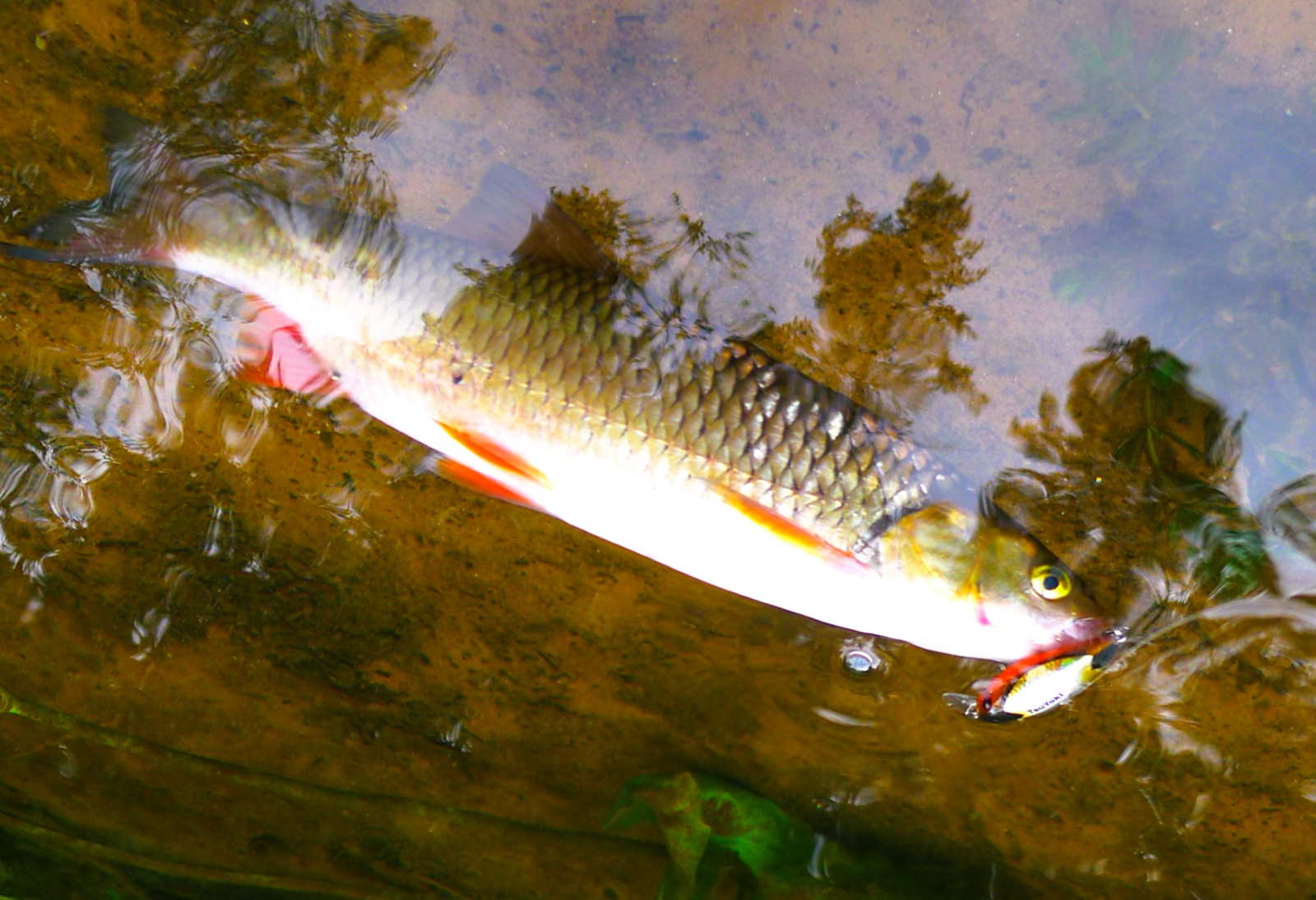 Течение TsuYoki Chef 32F держит хорошо, поэтому пригоден для ловли на любых голавлевых реках, с любыми перекатами. По классике им хорошо можно облавливать такие места ниже перекатных зон, запуская воблерок по дуге и периодически задерживая проводку в перспективных точках, за виднеющимися сквозь линзы поляриков камнями, корягами и в окнах средь травы. Крючки -тройнички на воблере острые и крепкие, так что на выводе против струи еще ни разу не разгибались, даже если приходилось форсировать вываживание, не давая голавлю нырнуть под корягу, или обрезать шнур об встречный камень.