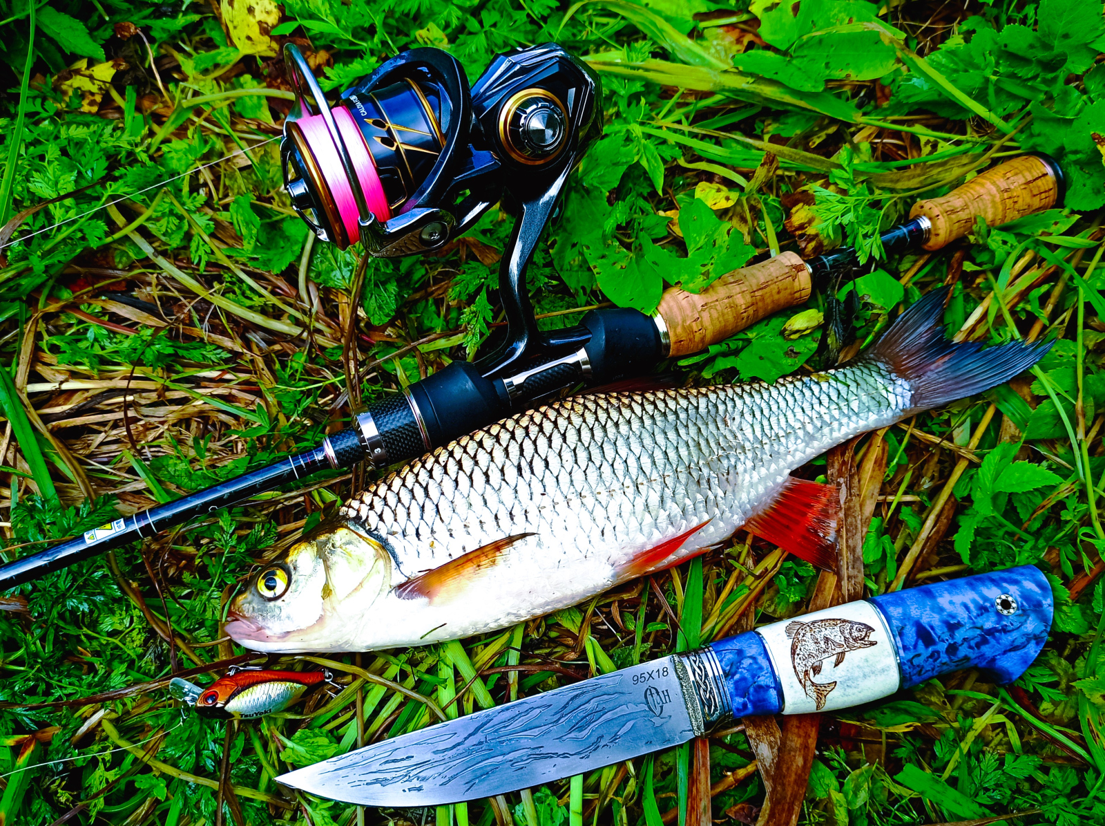 Несколько проигрывая старшему брату в дальности заброса, младший «научный сотрудник» Chef 32F бороздил речные просторы почти на той же глубине, что и 38-й Шеф, уступая ему всего сантиметров на 10-12 по моим меркам. То есть на 50-60см он вполне себе заныривает на проводке. А будучи на полтора грамма легче, хоть и летит не так далеко, но в точности заброса не проигрывает старшему, если конечно нет порывистого ветра.