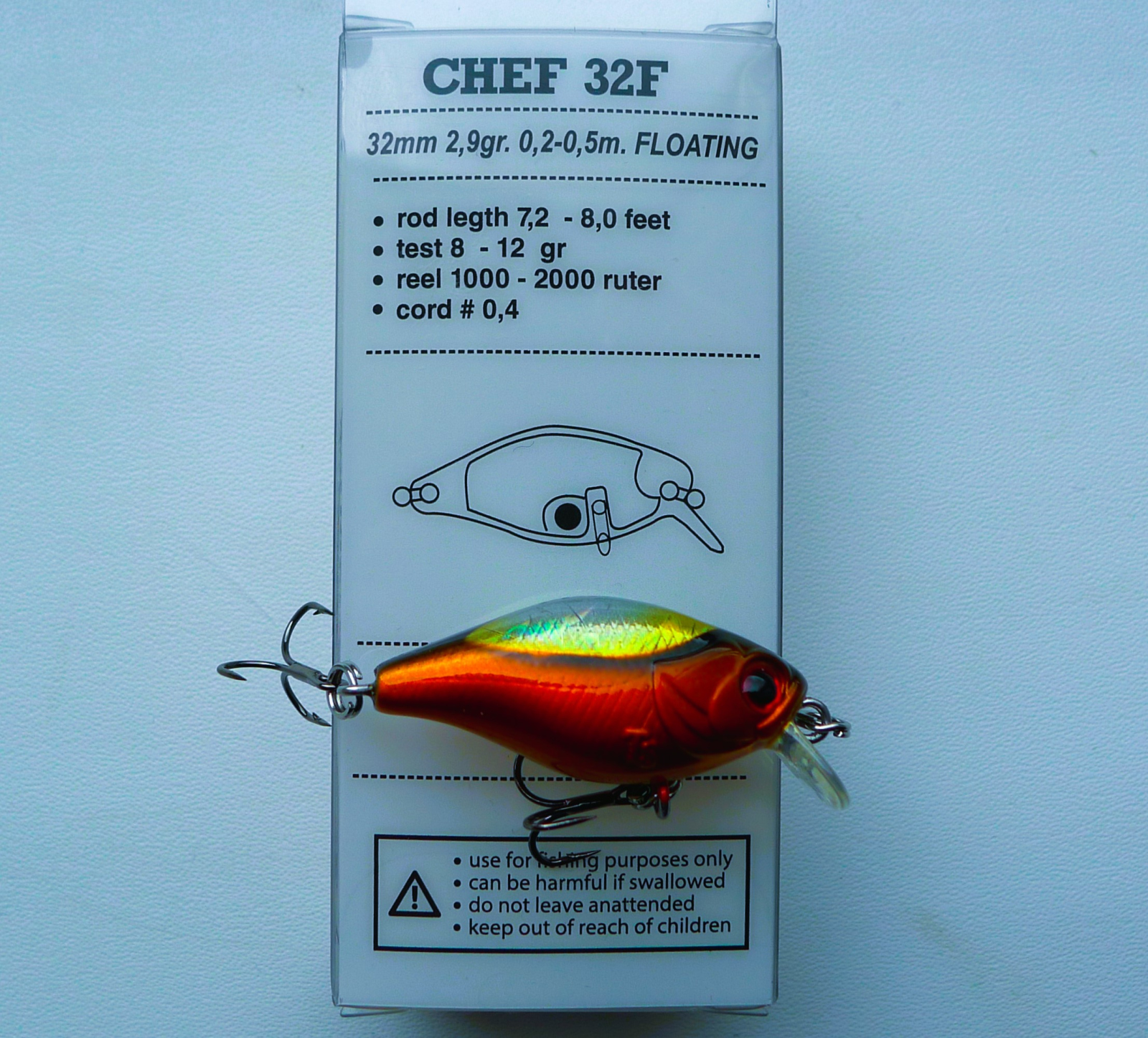 Собственно, ничего особо нового я о TsuYoki Chef 32F не расскажу. Это такой типовой крэнкбейт, стабильно работающий, уловистый, вполне качественно исполненный, за совсем небольшие деньги. Из прочих рыб, кроме голавля и окуня, этот малый, в отличие от старшего Шефа, в одной северной вылазке помог мне в ловле язей. Так что ,можно сказать, данный воблерок способен на сюрпризы.