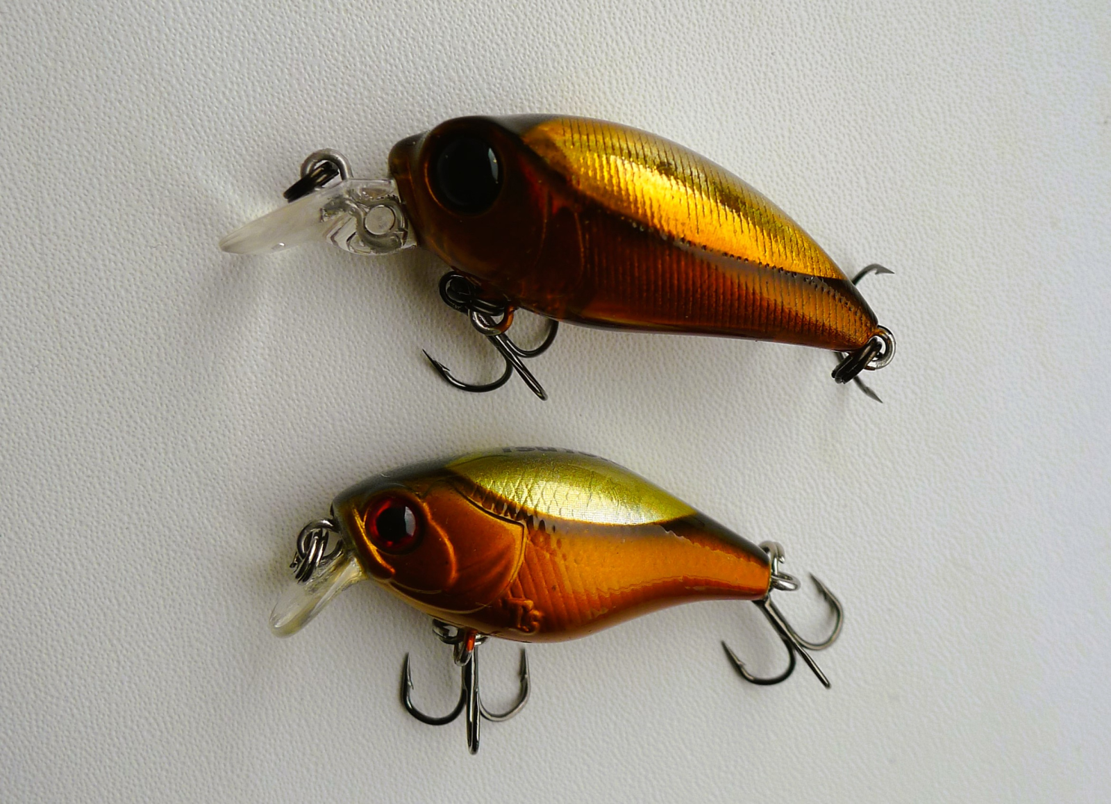 Мне давно нравится один вид окраски в крэнкбейтах, который TsuYoki позаимствовали у японцев из Smith. Это такой коричневый жучок с крылышками серебристого цвета, он и голавлю нравится и при проводке серебристая спинка визуально прекрасно позволяет отслеживать воблер в воде. На фото ниже TsuYoki Chef 32F и тот самый Smith в любимых мной «рубашках»: