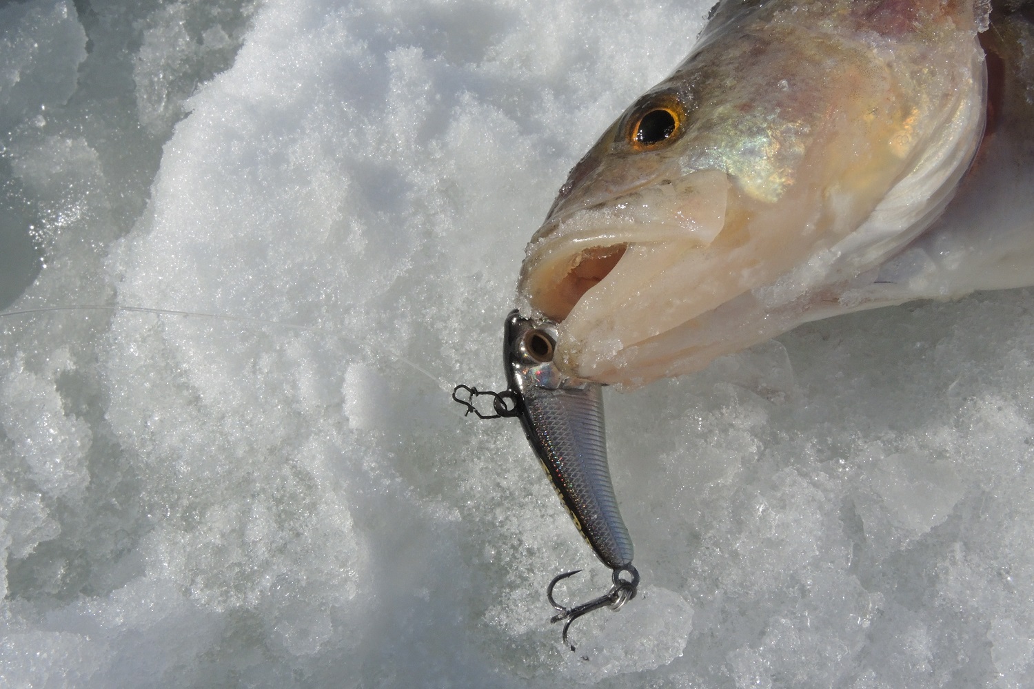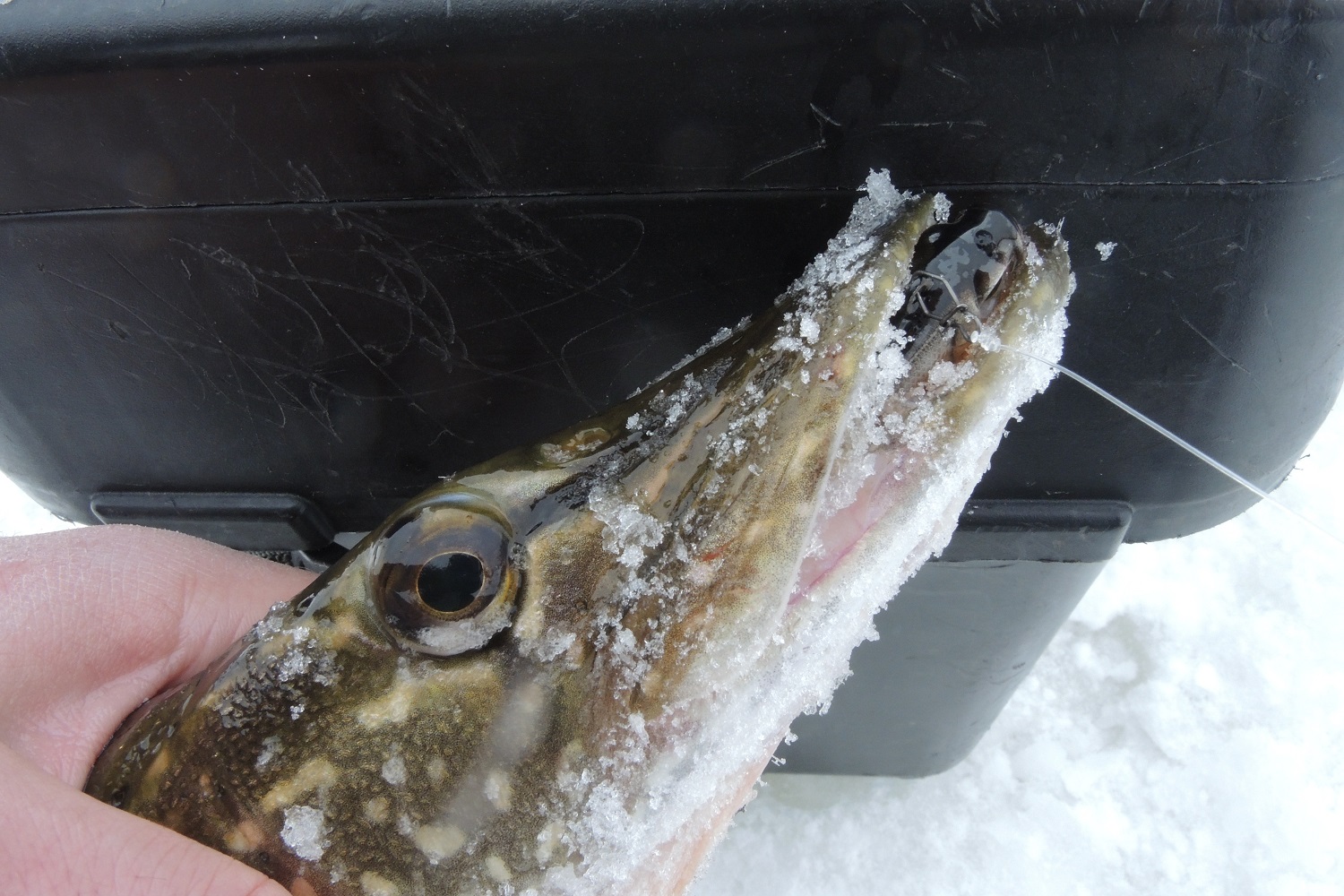 Потому что бывали случаи, когда при длительном вываживании крупной активной рыбы обычная монофильная леска просто обрезалась о нижний край лунки. Флюорокарбон же в этом плане выручает. Ну, и опять же способность противостоять щучьим зубам.