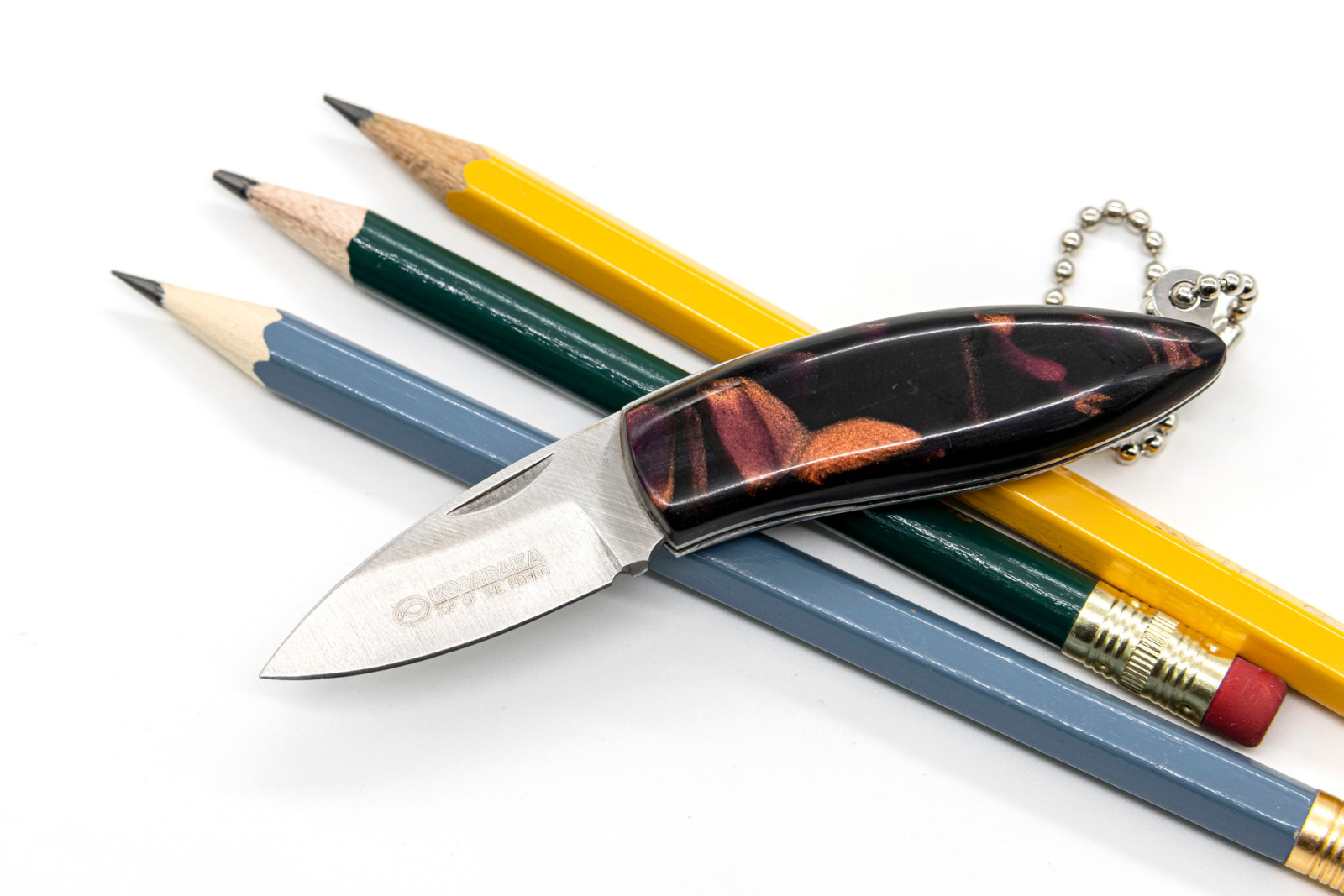 Также, данный аксессуар применим в качестве необычного брелка - цепочки для ключей, чипов и т.д. За счет яркой янтарной ручки он не потеряется и привлечет внимание, если случайно упадет в траву или снег.