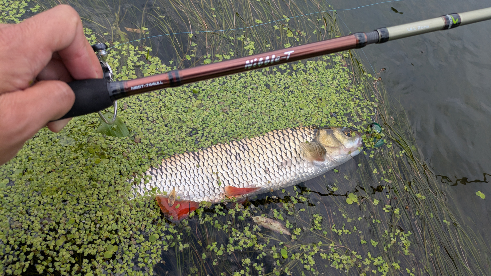 - Norstream Nibble T 744ULL с тестом от 2 до 10 грамм – это достаточно бюджетное удилище, и оно хорошо справлялось с данным воблером на забросе и проводке;
