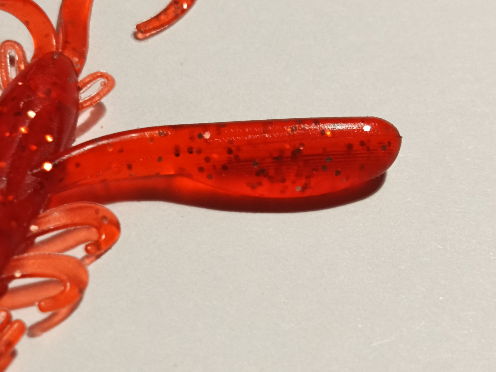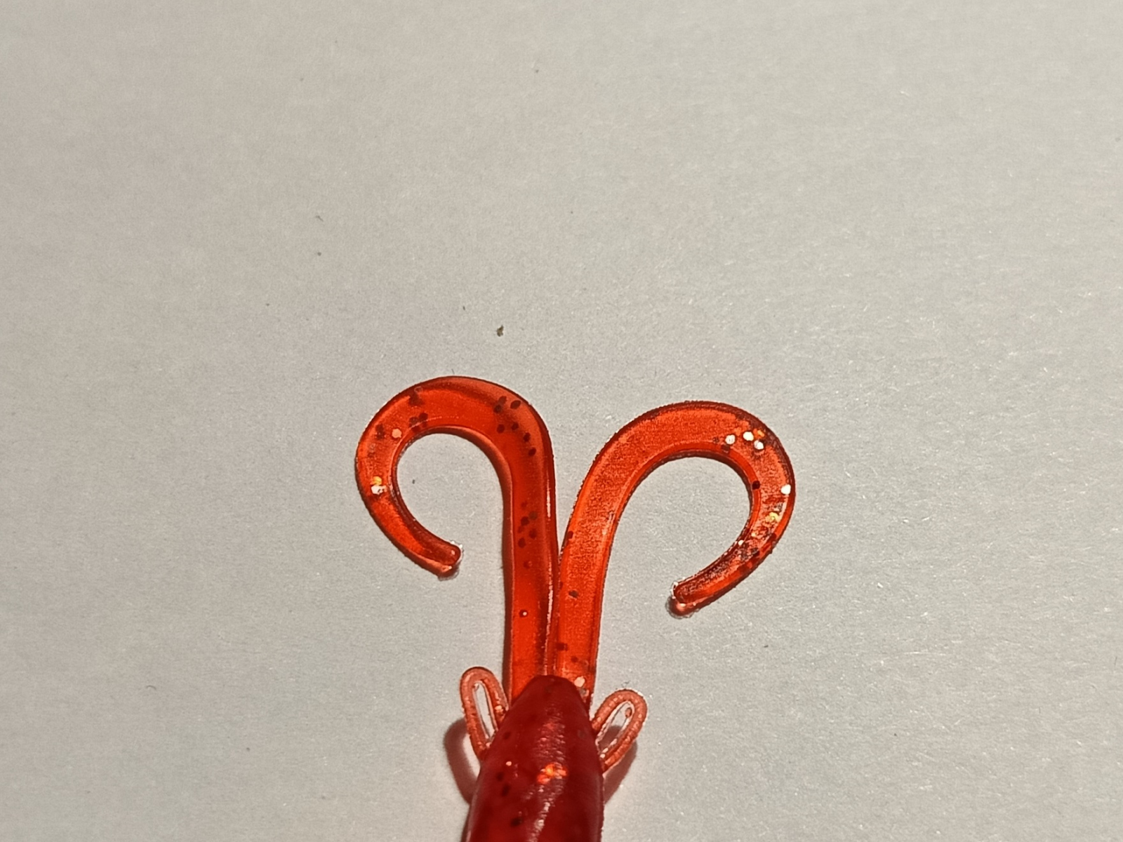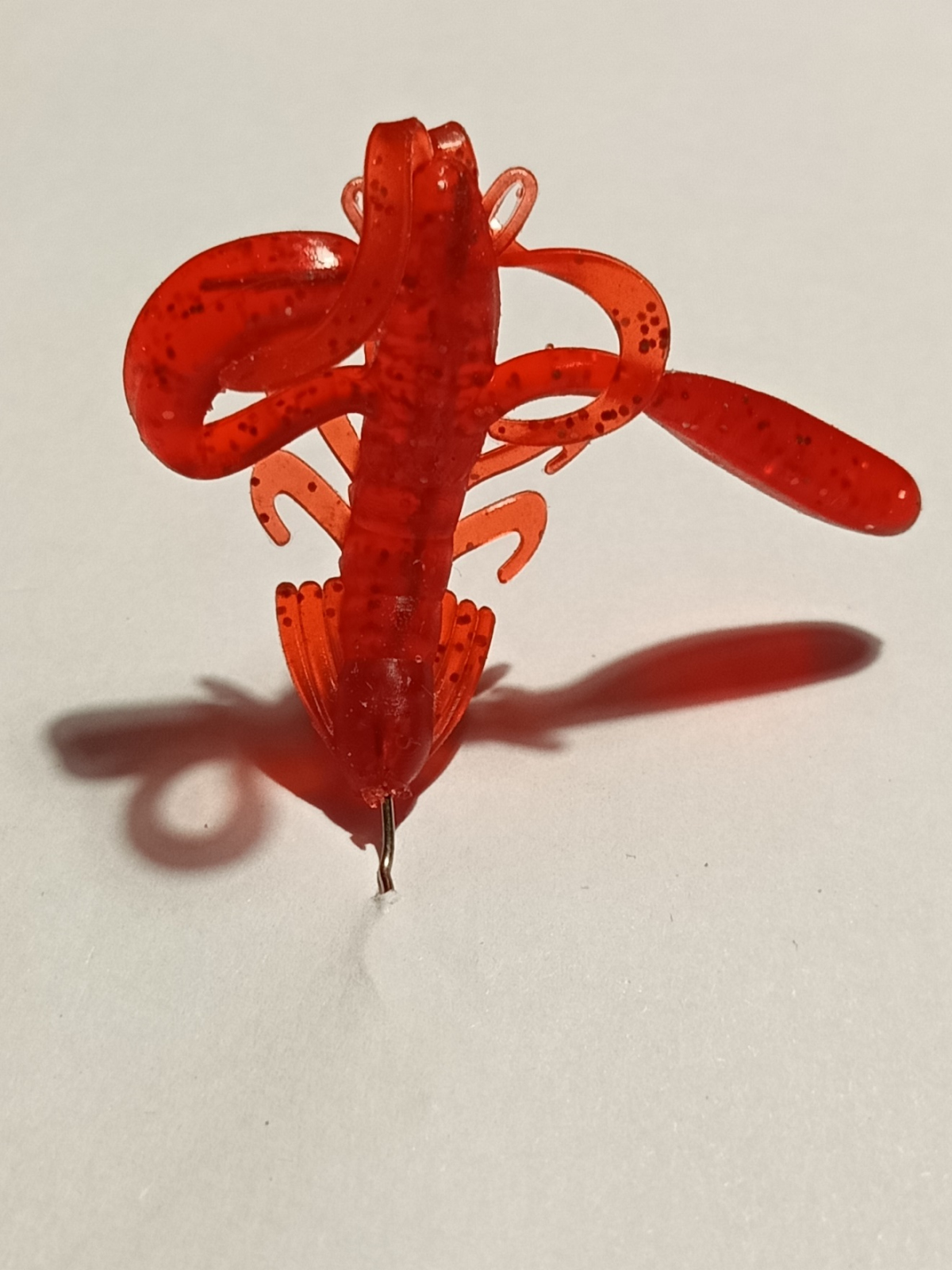 Приманка имеет две пары усиков, большие явно выделяющиеся на общем фоне приманки своей длинной в форме хвостиков от твистера и маленьких в виде небольших петелек в голове приманки.