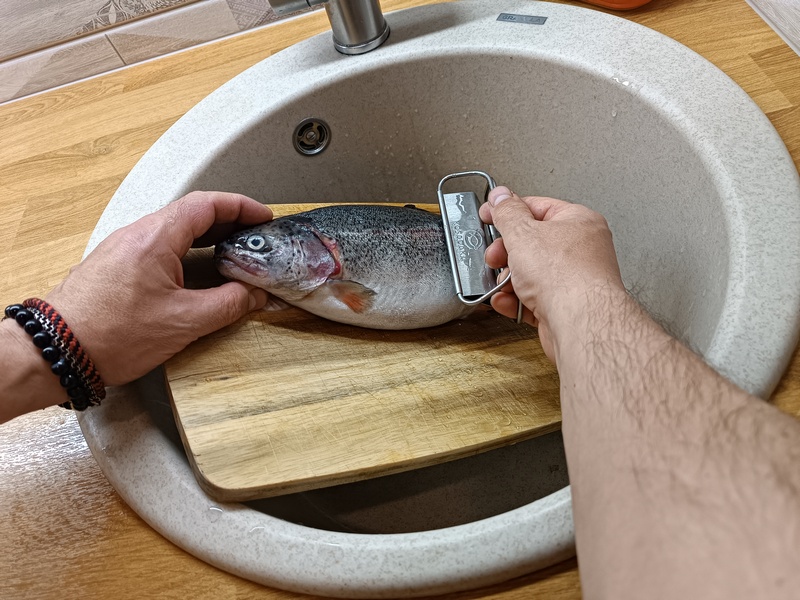 Ну и последнее, как это работает? Все элементарное – просто. Беремся за ручки и начинаем водить рыбочисткой вдоль тушки, очищая ее от той самой чешуи. Получается это легко и непринужденно. Особо отмечу, что Kosadaka справляется с любыми типами рыбьего покрова: мелкая форелевая, крупно-карповая, бронебойная судачья, щучья и так далее. Но больше всего порадовала возможность обрабатывать окуней, причем любого размера, от спортивно-фестивального до матерых горбачей. Кстати, там в карточке товара вроде как мой ролик, записанный много лет назад, прикреплен. Кто не верит написанного – посмотрите сами.