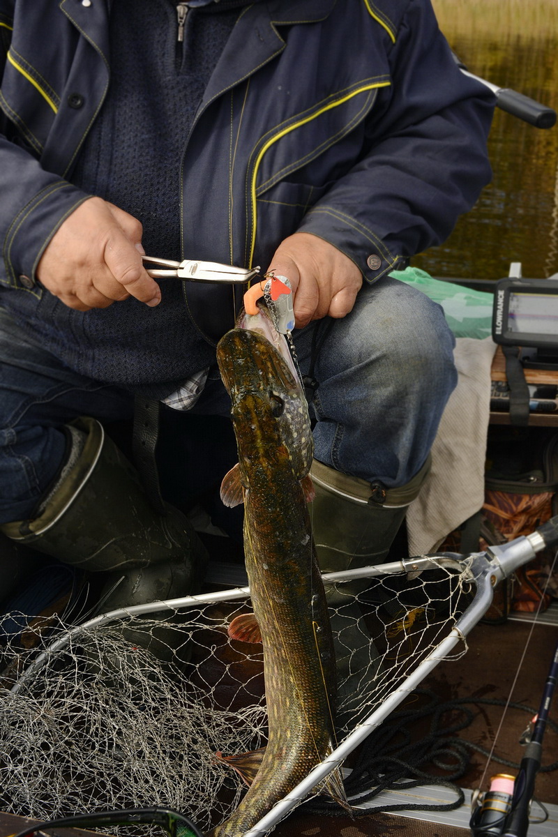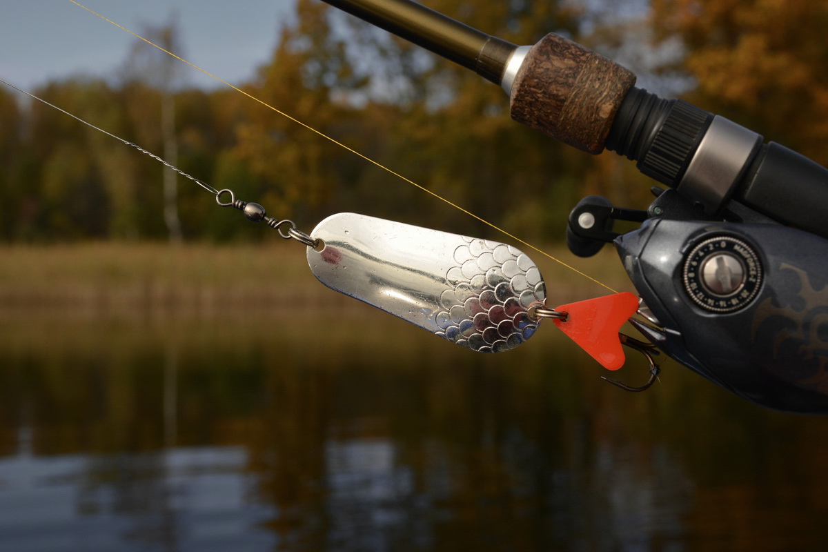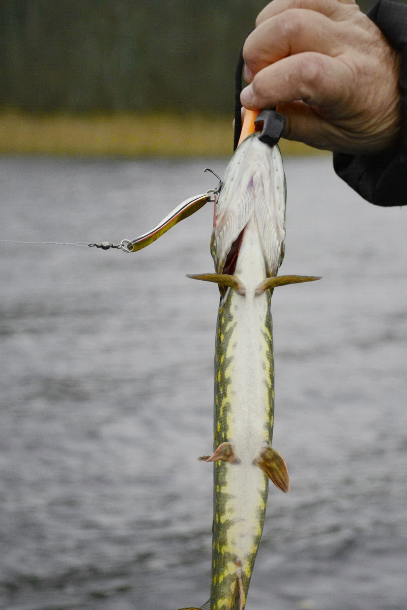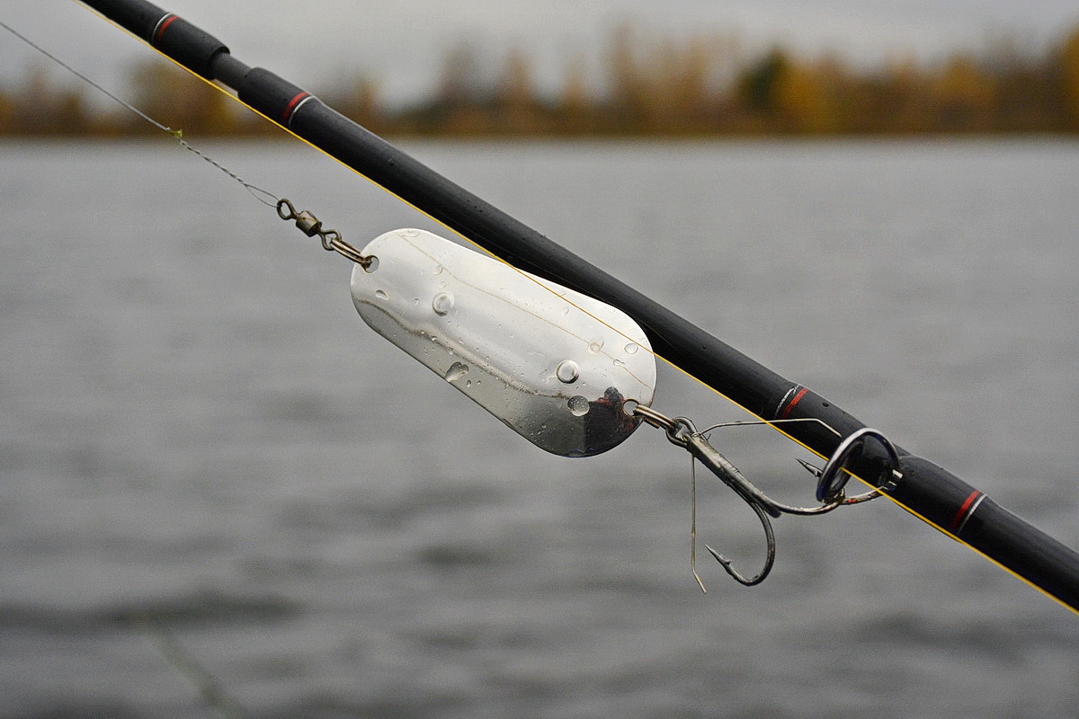 Впрочем, это никак не сказывается на её уловистости. Так как при ловле в указанных условиях сверхдальние забросы не только не нужны, но бывает, что идут и во вред. Ибо осевшая после похолодания растительность теряет жёсткость, частенько цепляется не только за защищённый тройник, верхнюю часть блесны, или вертлюг, но и забивается в скрутку поводка. Так что как по мне лучше сделать пару лишних забросов или лишний раз переставить лодку, чем раз за разом счищать с приманки траву.