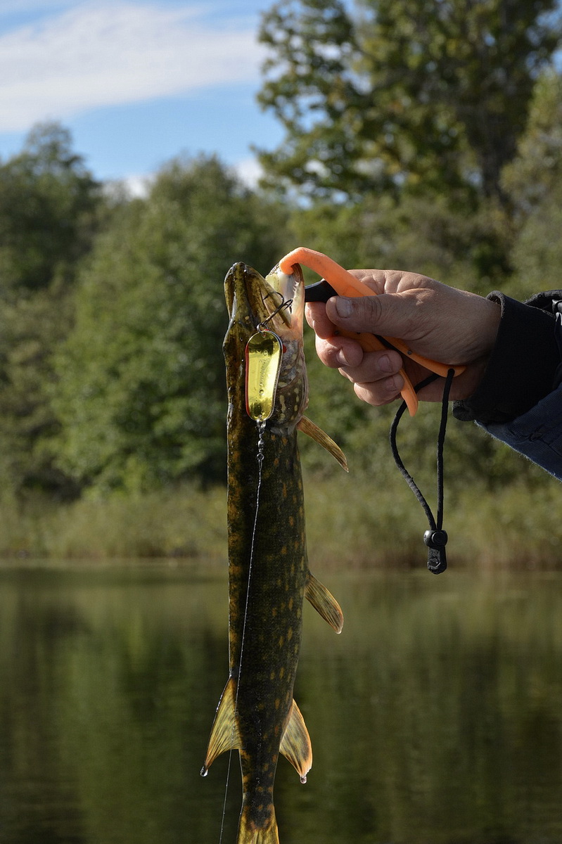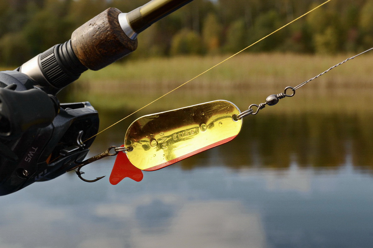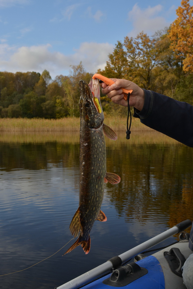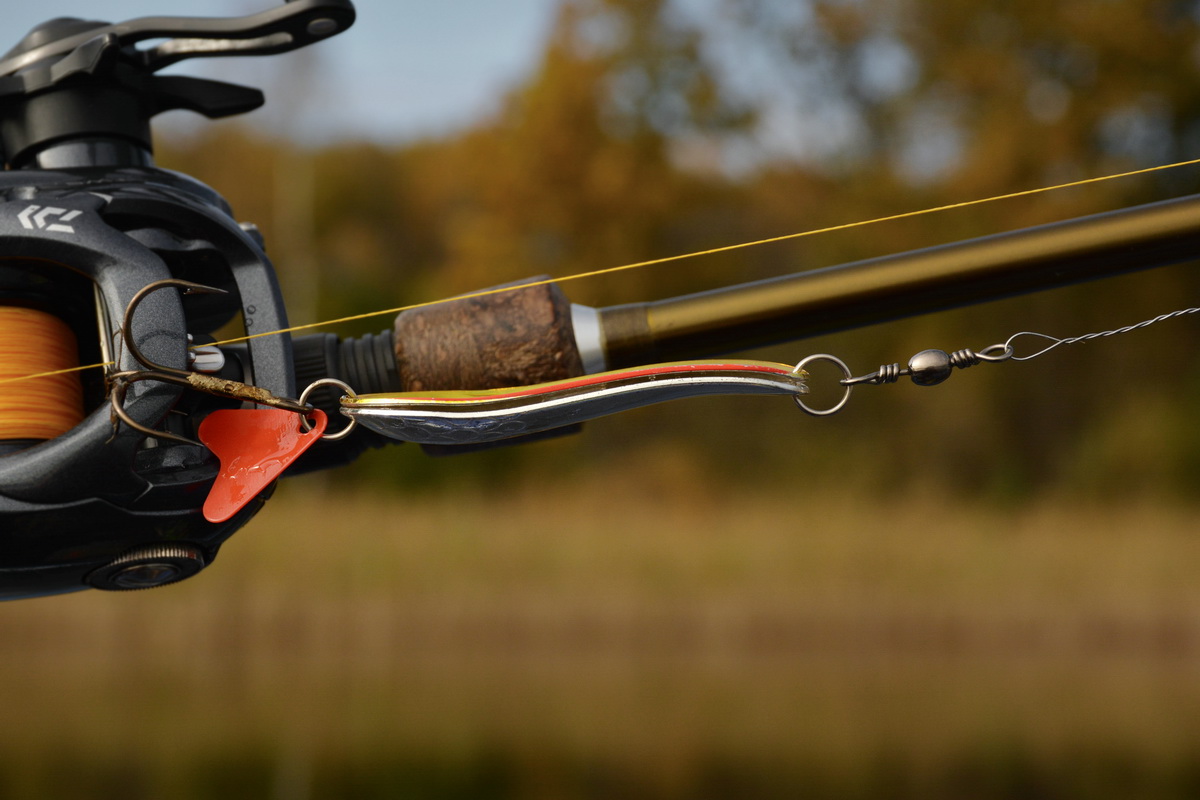 Впрочем, это никак не сказывается на её уловистости. Так как при ловле в указанных условиях сверхдальние забросы не только не нужны, но бывает, что идут и во вред. Ибо осевшая после похолодания растительность теряет жёсткость, частенько цепляется не только за защищённый тройник, верхнюю часть блесны, или вертлюг, но и забивается в скрутку поводка. Так что как по мне лучше сделать пару лишних забросов или лишний раз переставить лодку, чем раз за разом счищать с приманки траву.