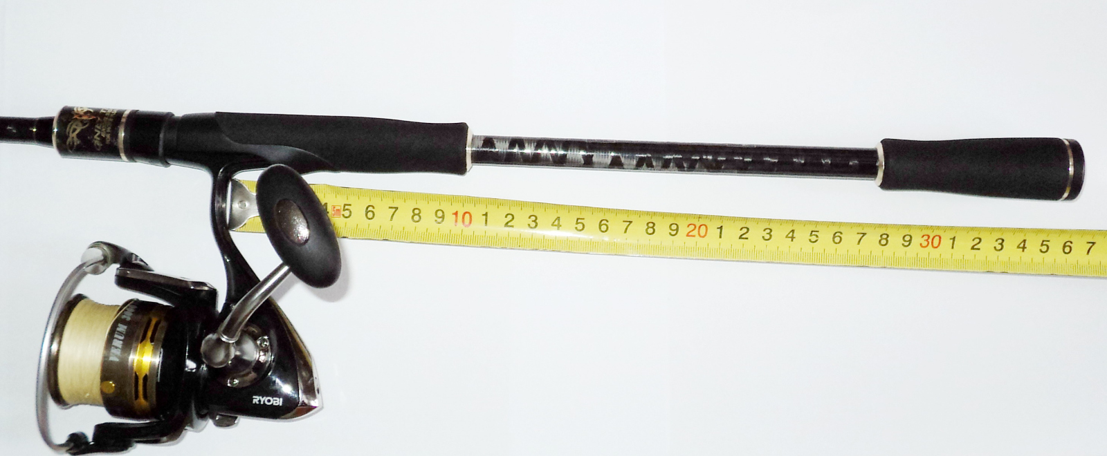 Общая длина рукоятки с зажатой катушкой - 44 см, а от бата до лапки катушки - 36,5 см. Баланс с катушкой около 300 грамм не идеальный, но во время ловли о нём даже не думал, а значит ничего не напрягало.