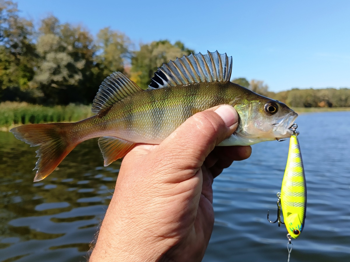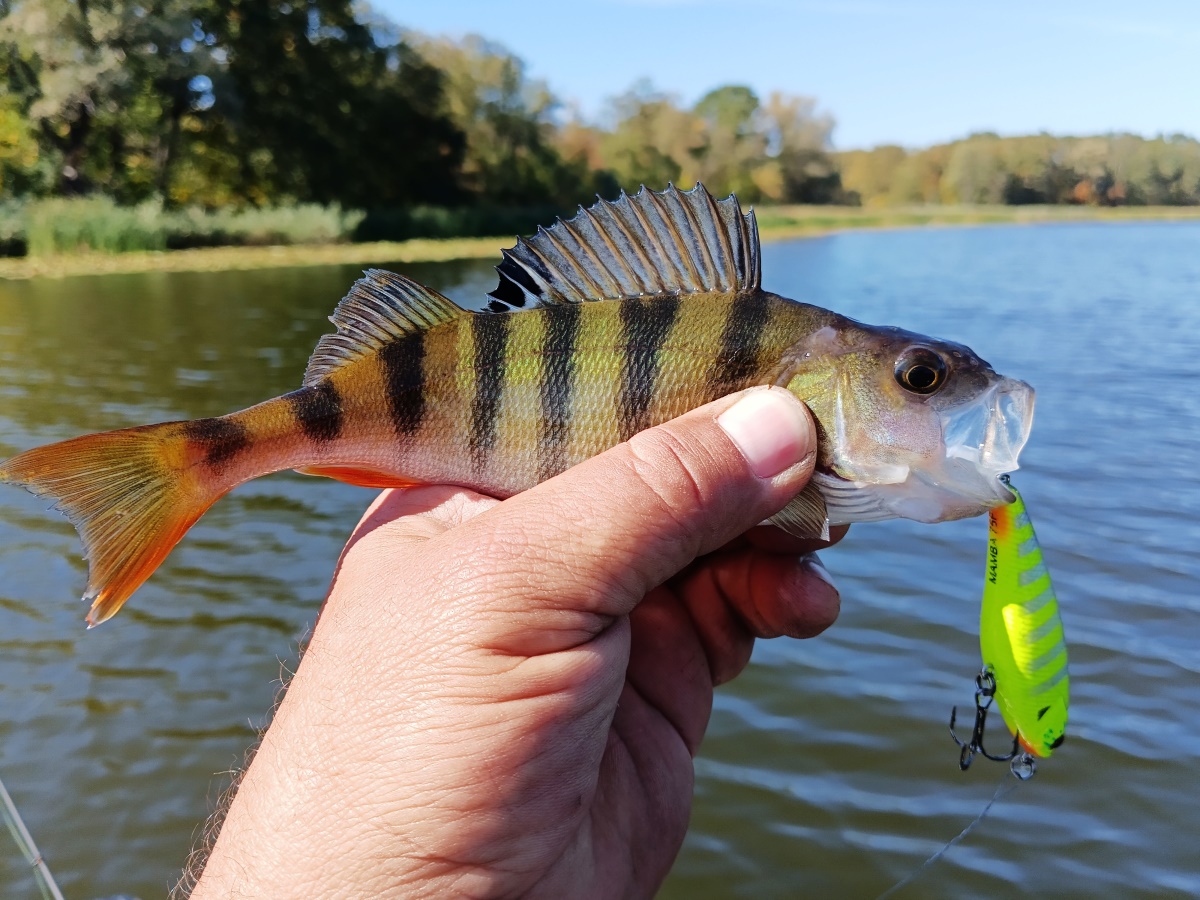 Что еще понравилось у MAMBA 75F – это способность «завести» окуня. Не «котлующего», готового атаковать любую приманку, попавшую в поле зрения. Кстати и его обозреваемый уокер ловит просто великолепно. Довольно крупные тройники не всегда поддаются полосатому с первой попытки, но он не сдается, бьет снова и снова, пока все же не повиснет на крючках. А вот никак не проявляющий себя окунишка, увидев проходящий поблизости уокер, часто не может устоять перед такой соблазнительной добычей. И это случается регулярно, но чаще ограничивается одной, максимум двумя поклевками. Вероятно, проявляют агрессию самые азартные хищники в отдыхающей стайке. Вообще, с окунем все просто: желающий клюнуть, обязательно клюнет. Очень уж заводная эта рыба.