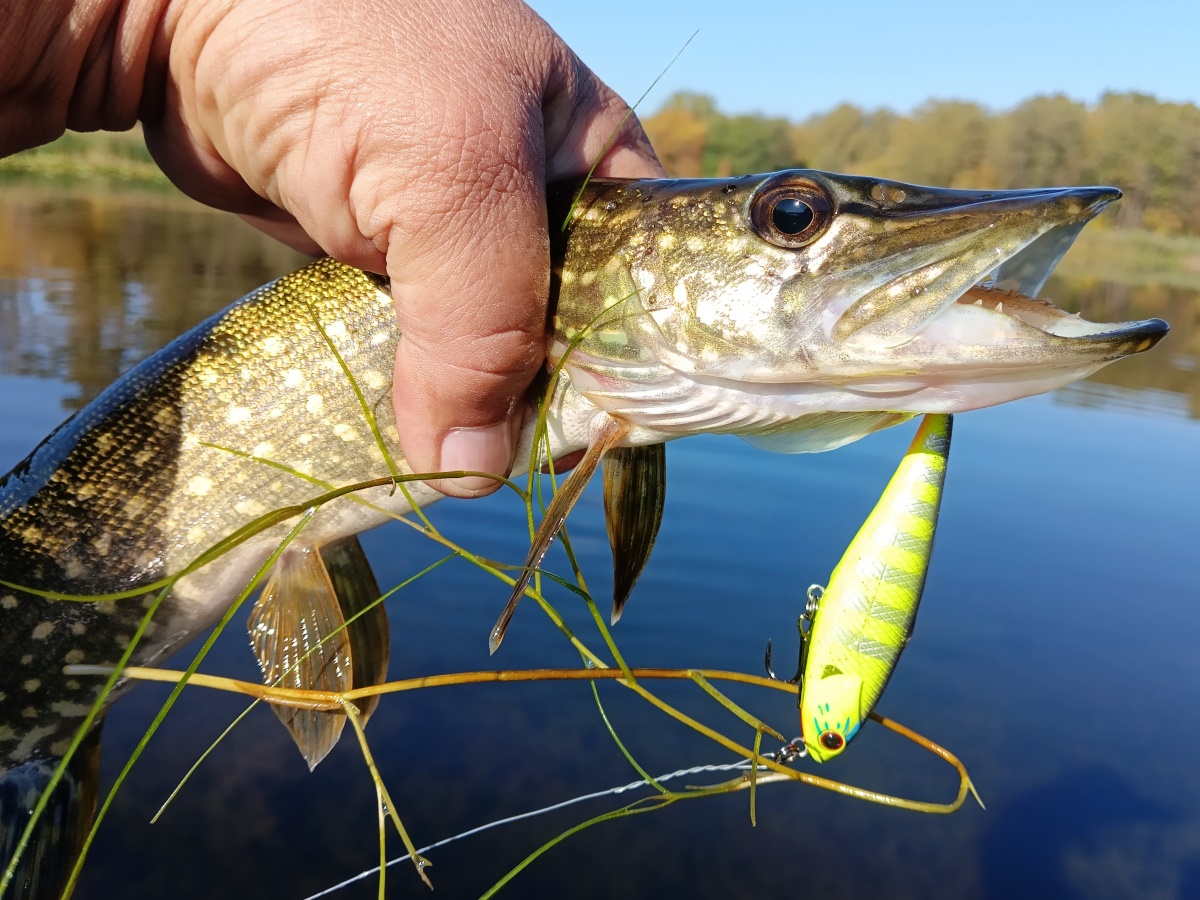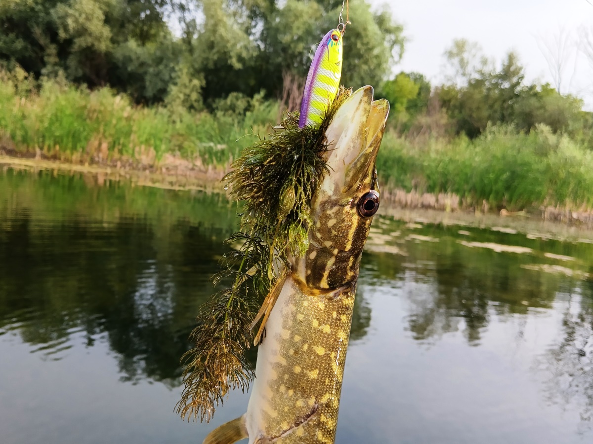 Со щукой все сложнее. Намного. Во-первых, на мели, где и проявляют себя во всей красе поверхностные приманки, обитают, как правило, некрупные особи. Сами по себе малоинтересные в качестве улова. Во-вторых, щука часто не предрасположена к «доклевыванию». Одна попытка и все. Если промазала, больше не клюнет. Бывает такой хороший удар, а вхолостую. Обычно попадает в поводок, который скручивается в поросячий хвостик, а то и в само тело, но чудным образом мимо тройников. А потом кидай – кидай, ноль реакции. Но через полчаса – час стоит вернуться к этому месту, и вполне может повезти.