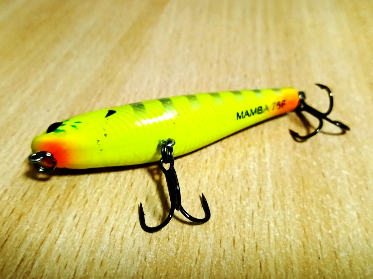 Одни в поисках своего трофея зацикливается на «биг-бейтах», другие, чтобы поймать хоть что-нибудь, уходят в микроджиг, и даже мормышинг. Это две крайности, а между ними находится "универсальный солдат" MAMBA 75F. Данный уокер огромную рыбину поймает с достаточно малой вероятностью, но так же почти всегда позволит «уйти от нуля» и даже с вполне приличным результатом. Еще один плюс: капризный окунь при его ловле на микроджиг полностью проигнорирует и небольшой металлический поводок. Отсюда неминуемые срезы от вездесущих и вечно голодных щурят. С более крупной приманкой, будь то вращающаяся блесна или воблер, такого почему-то не происходит. И даже мелкий окунь на ту же MAMBA 75F клюет уверенно. С металлическим поводком. И срезов от острых зубов щук уже не стоит опасаться. В общем количестве поклевок окуня мы, естественно, теряем, но в целом по размеру трофеев только выигрываем.