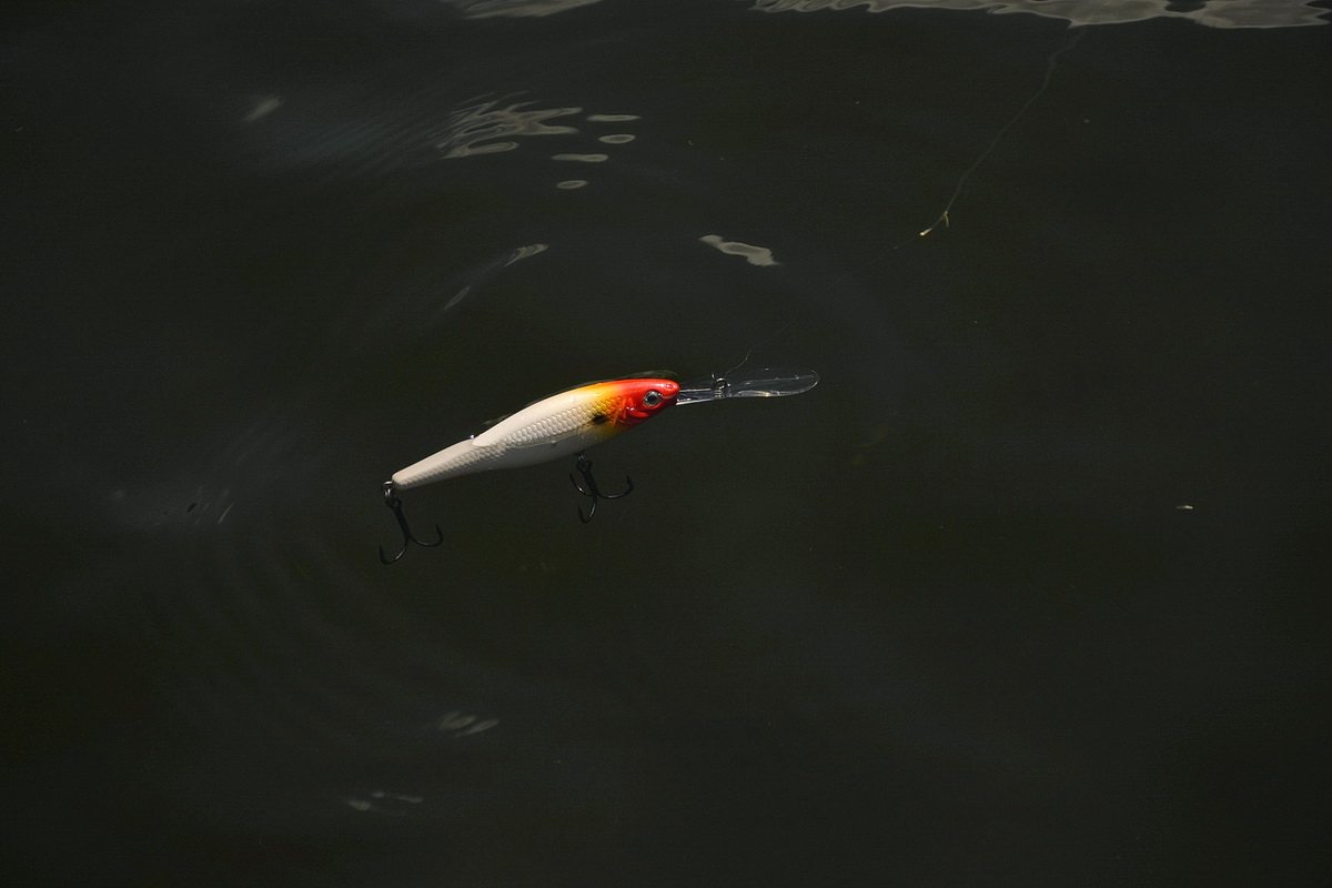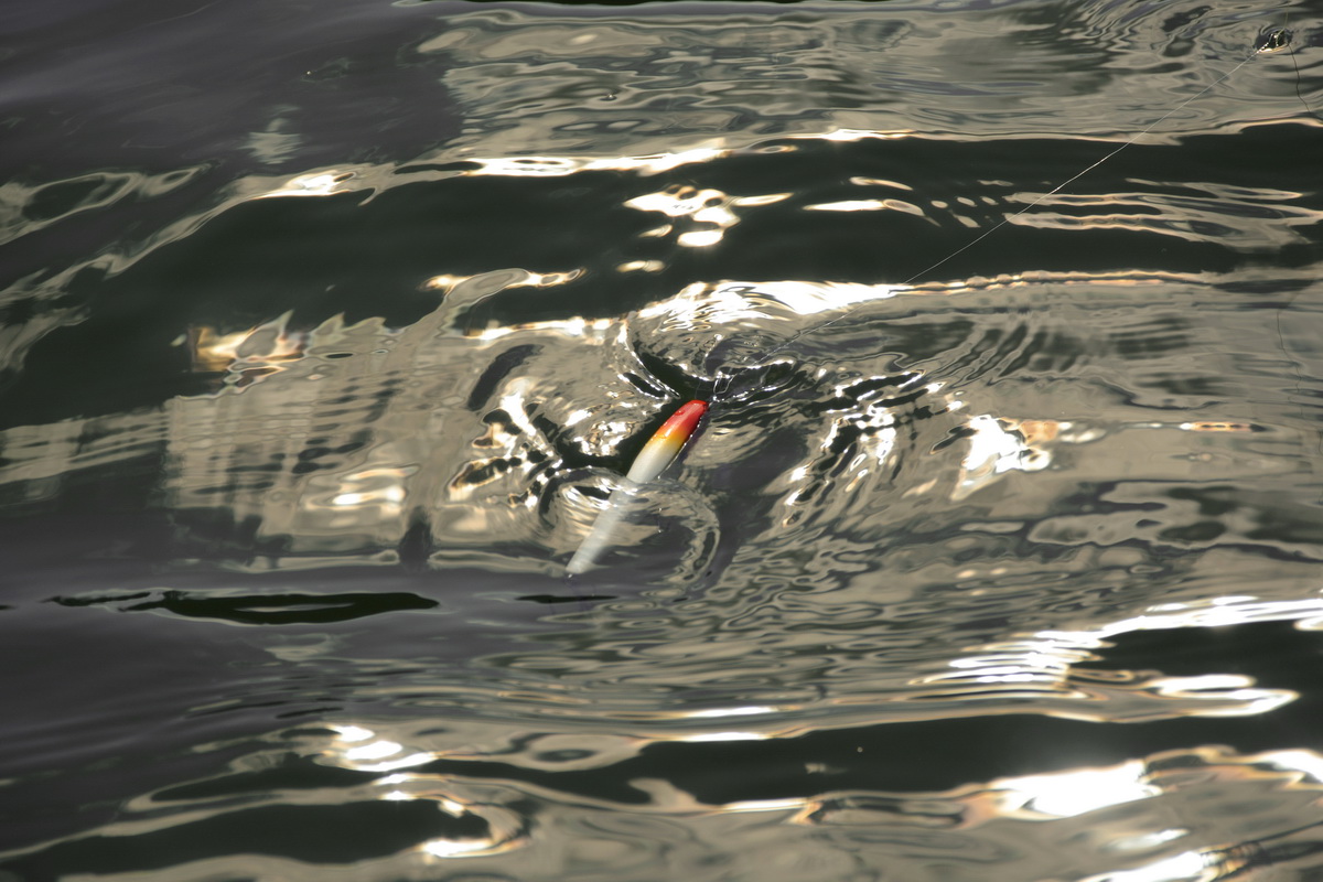 Если же взять удилище помощнее, то при твичинге мы увидим и широкие развороты, и галсы, и выкладывание воблера на бок, и средней амплитуды покачивания боками. В то время как при использовании понтуновского удилища, Pulse Minnow deep 80 лишь подныривая, рисует узкую ёлочку, слегка заваливается на бок и перед тем как начать всплывать пару раз едва заметно качает боками.