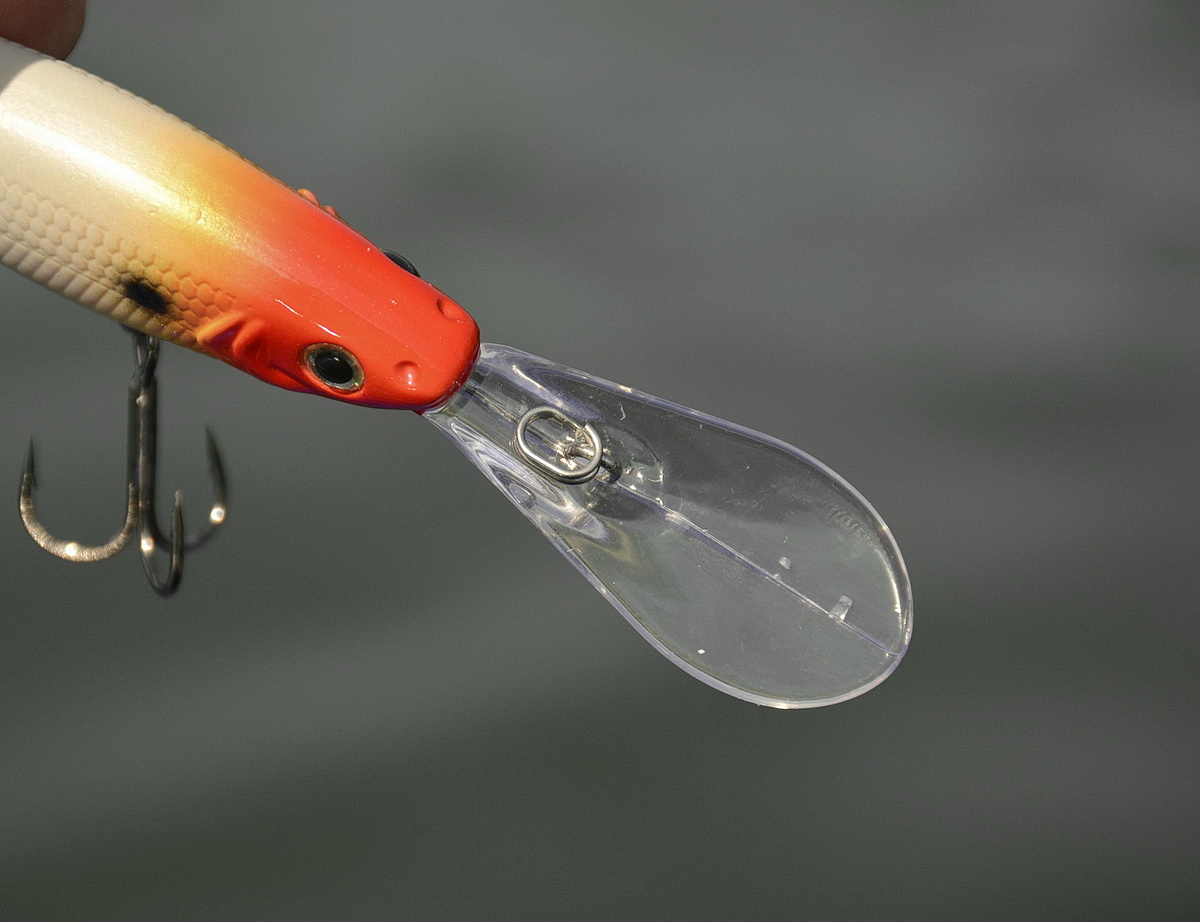 Заглубляющая лопатка у Pulse Minnow deep 80 длинная (почти пол тела), имеет узкое усиленное основание и широкое сильно скруглённое окончание. Монтажная петля расположена в небольшом, отстоящем от основания примерно на треть длины лопасти углублении и имеет усиленный, уходящий в тело воблера каркас.