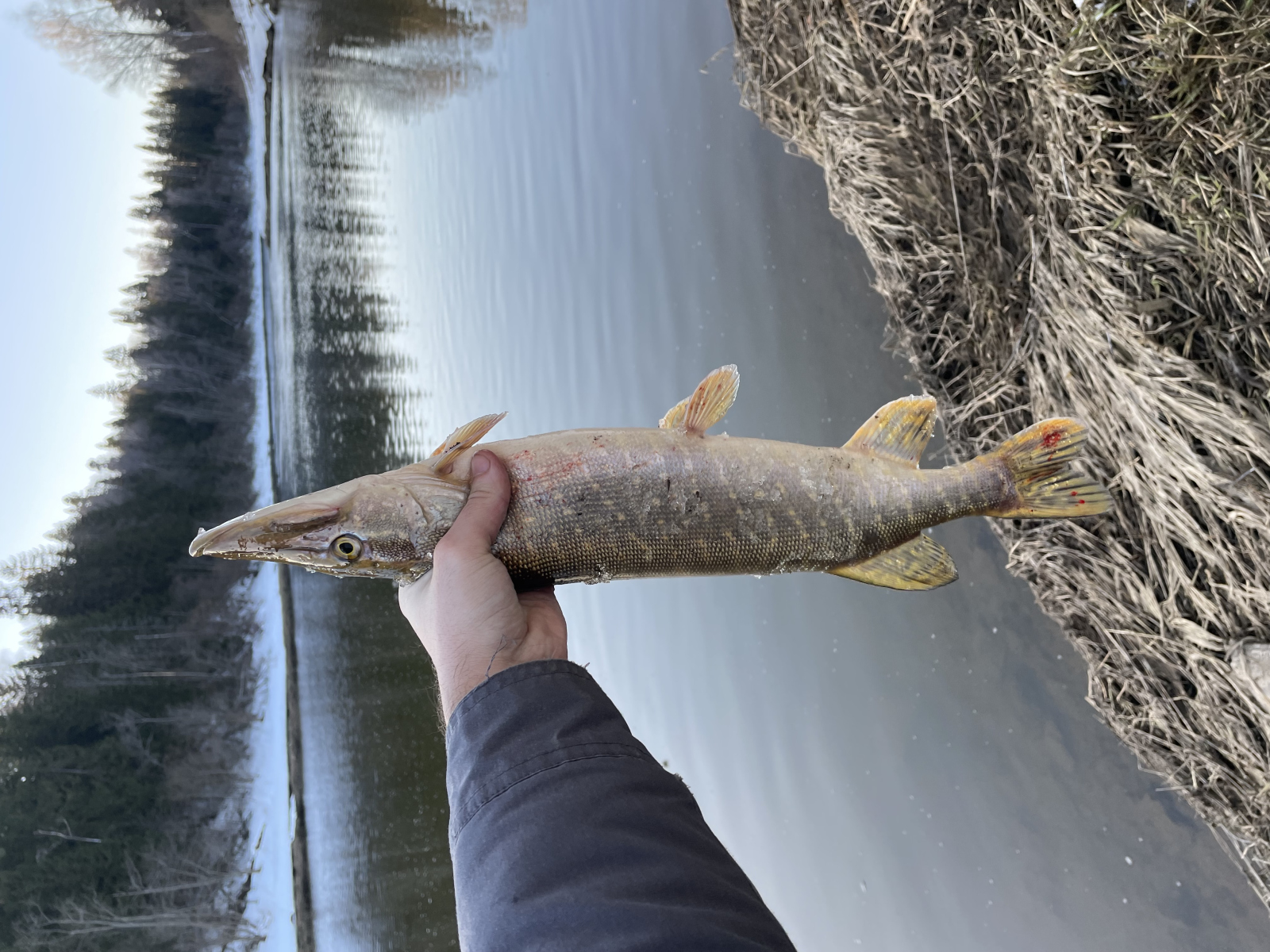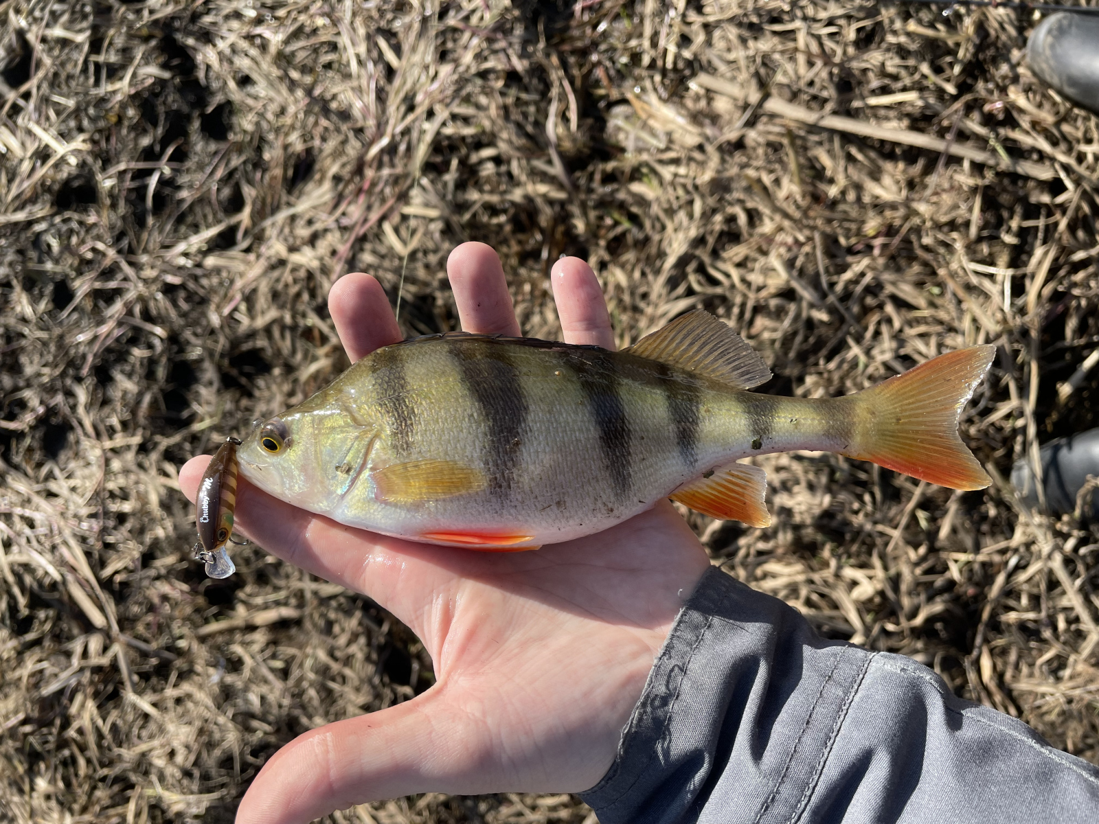 Ещё один важный момент — проводка. В холодной воде рыба экономит энергию, поэтому агрессивный твичинг может её скорее отпугнуть, чем спровоцировать. Я применял плавную, почти равномерную проводку с короткими паузами. Chubby Minnow 35 на паузе не всплывает резко и не тонет — он зависает в толще, слегка покачиваясь. Именно в эти моменты и происходили большинство поклёвок. Окунь атаковал резко, щука — с разворота, а жерех, судя по всему, бил сбоку, что и объяснило сход.
