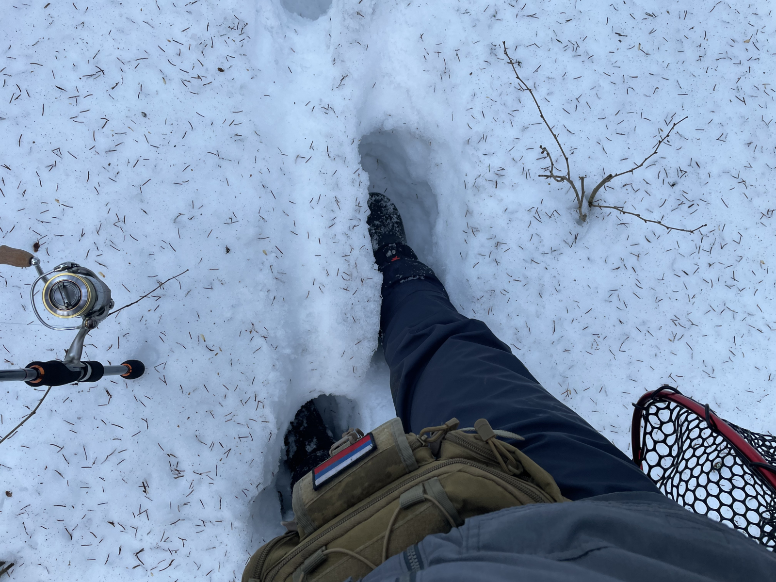 Сборы затянулись: то одно забыл, то другое. Дорога к реке оказалась нелёгкой — пришлось пробираться через целые сугробы, оставшиеся после зимы в лесу.