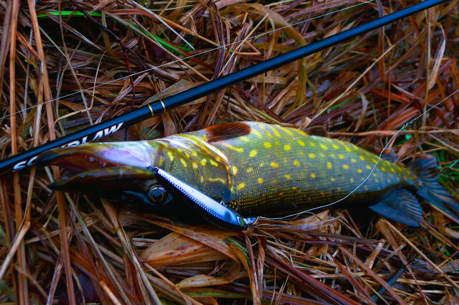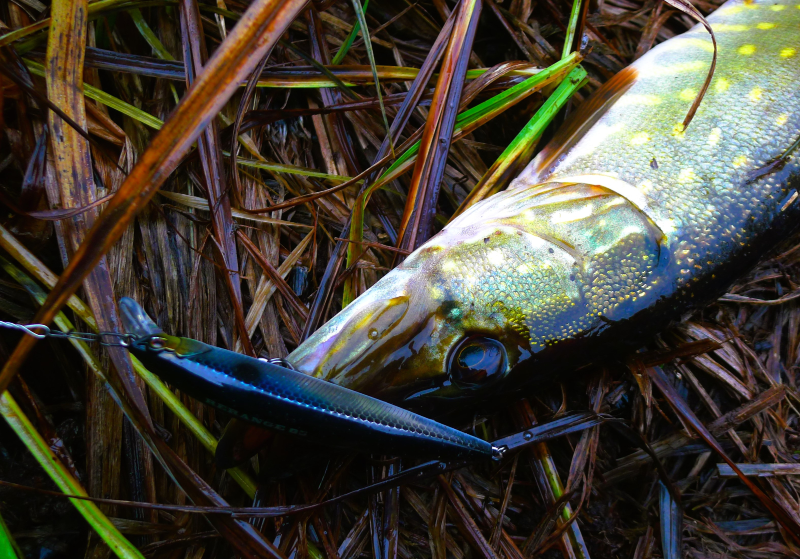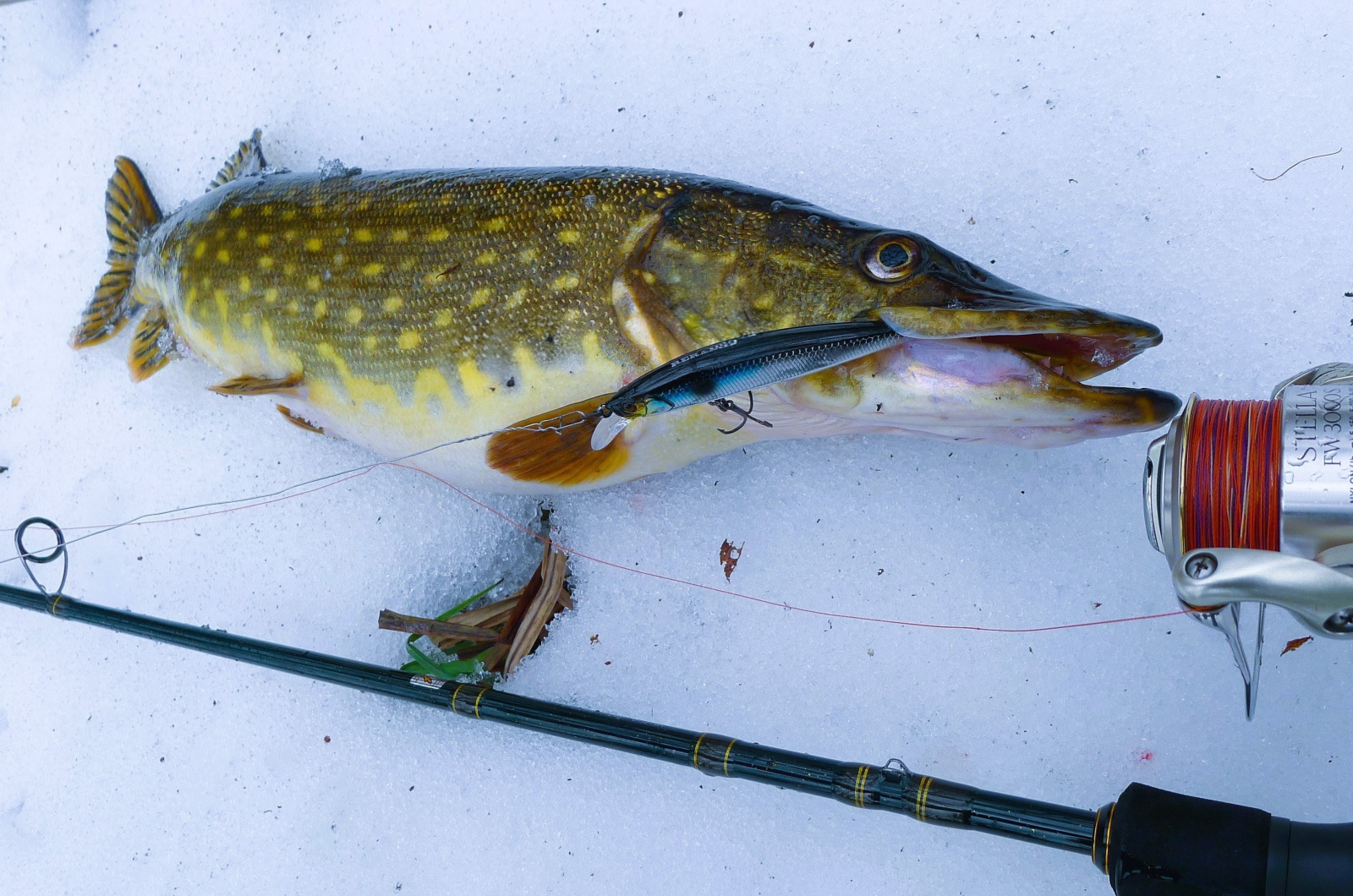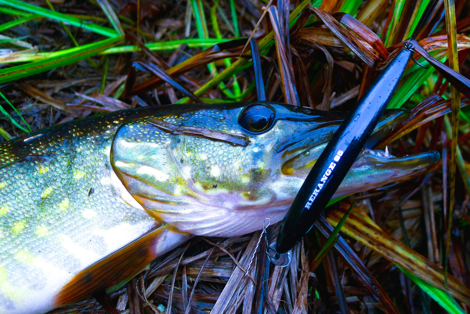 Не удивительно, что первыми пали при встрече с Rerange 85SP, щучьи особы. Воблерок то твичинговый, размерчик вполне подходящий, вот и пошло-поехало сначала со щуками. Рывками вести этого красавца одно удовольствие, воблер мечется из стороны в сторону, на паузе замирает и какое то время покачивает боками. К тому же равномерная проводка у Rerange 85SP тоже хороша, он рисует четкую размеренную змейку под водой. В общем, сразу было ясно, что от щук отбоя не будет, ни зимой, ни летом.