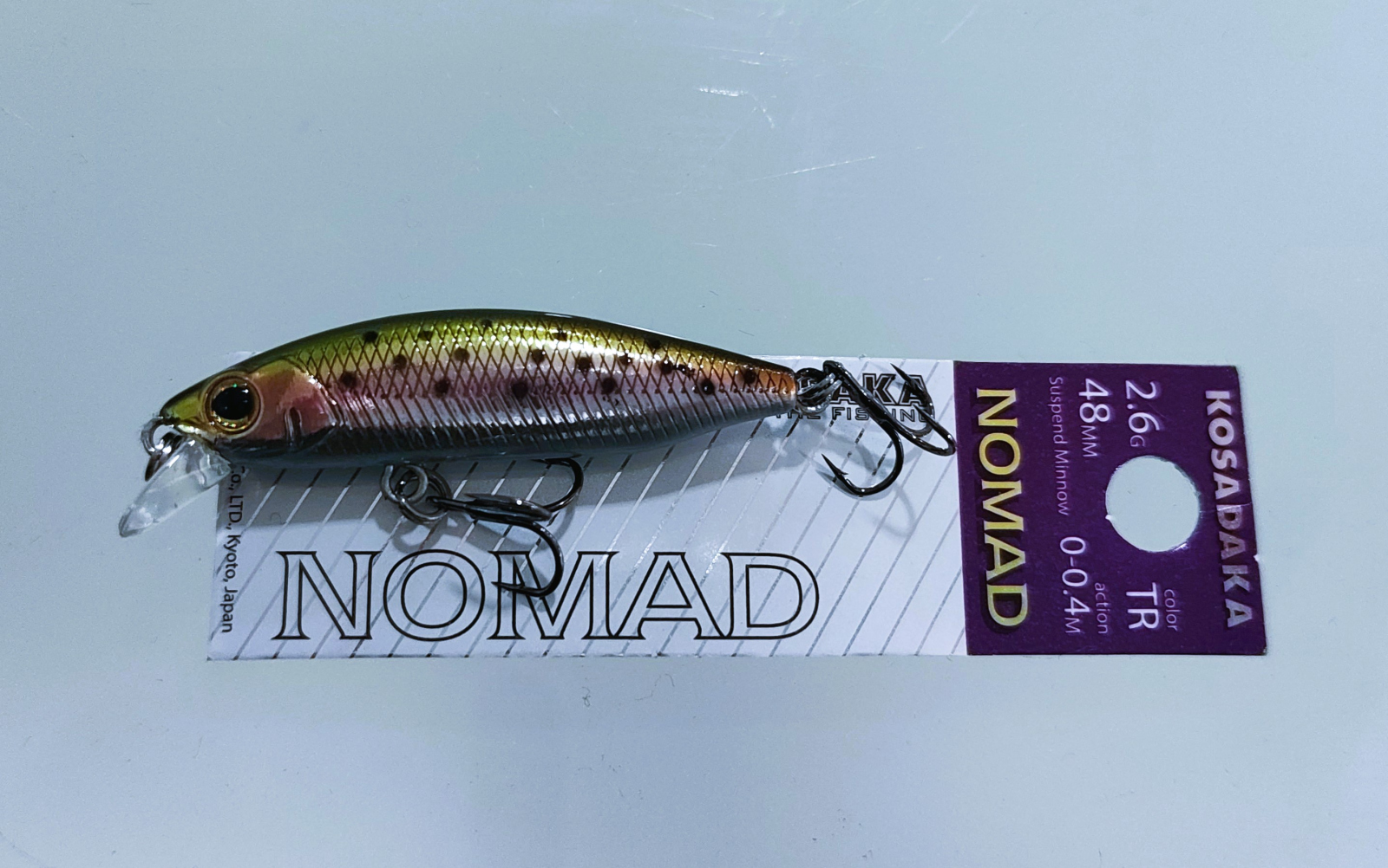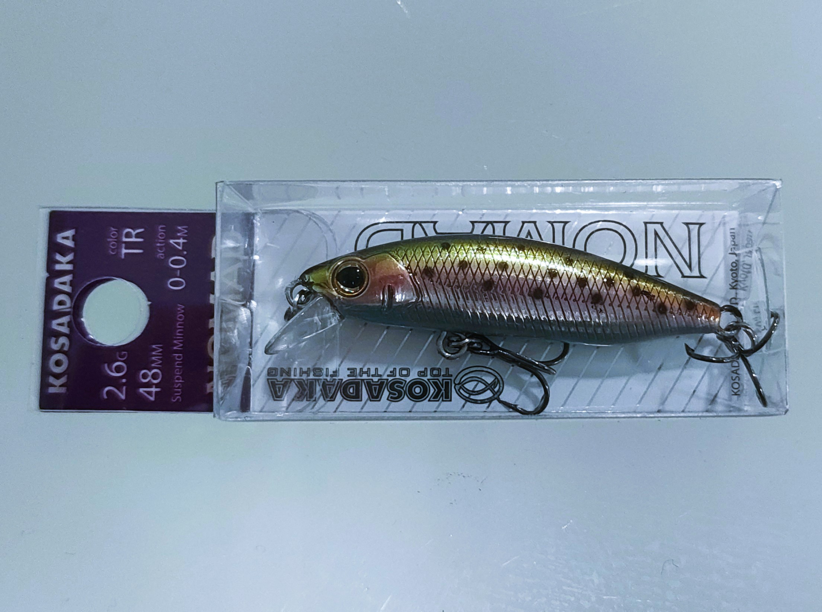 Воблерок Kosadaka Nomad XS попал ко мне не просто так, он ведь создан по мотивам одного из моих любимейших микровоблеров - Smith AKM-48. Только, в отличие от смиттовского классического тонущего форелевика, Nomad XS заявлен плавающим, это уже становится понятно при сравнении огрузки обоих приманок, где Nomad XS на целых два грамма легче, что при размере всего в 48мм весьма существенная разница.