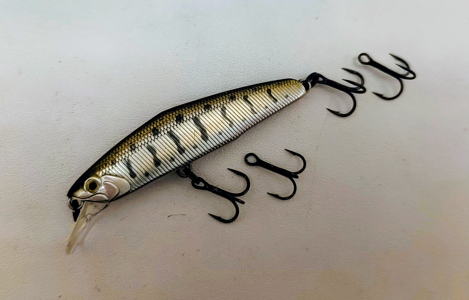 Мое знакомство с данным воблером произошло абсолютно случайно. В тот теплый сентябрьский день 2021-го года, я махнул на далекую от моих пенат форелевую речку, где не был уже пару лет. Не спеша продвигаясь по воде против потока, чтобы быть в хвост рыбе и местами выходя на берег, дабы обойти глубокие ямы, при одном таком обходном маневре я буквально едва не насадился носом на крючки висящего на ветке небольшого воблерка. Сняв с крепкой черемуховой ветви неожиданный сюрприз, осмотрелся вокруг и поразмыслив, пришел к выводу, что наверняка приманка оказалась тут не в результате неточного заброса, - ее бы просто сняли, перейдя неглубокую речку поперек. Скорее всего, у незадачливого спиннингиста произошел отстрел воблера при забросе и точное место посадки его осталось для рыболова неясным.