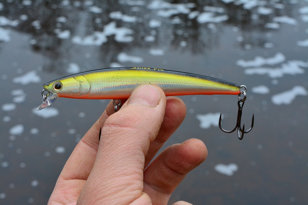 Теперь о проводке. Strike Pro Arc Minnow 105SP хорошо отзывается на разные типы анимации. В самом простом базовом варианте, а именно равномерной проводке, как я говорил ранее, воблер идет соблазнительной змейкой, переваливаясь с боку на бок. Такой игры бывает достаточно. При хорошей активности рыба атакует его часто и жадно. Даже совсем некрупная.