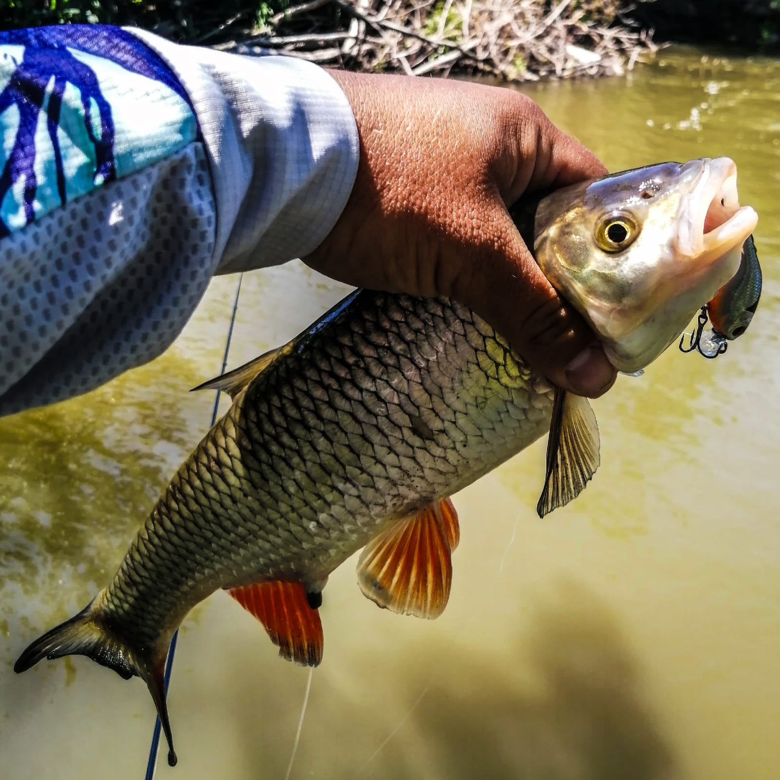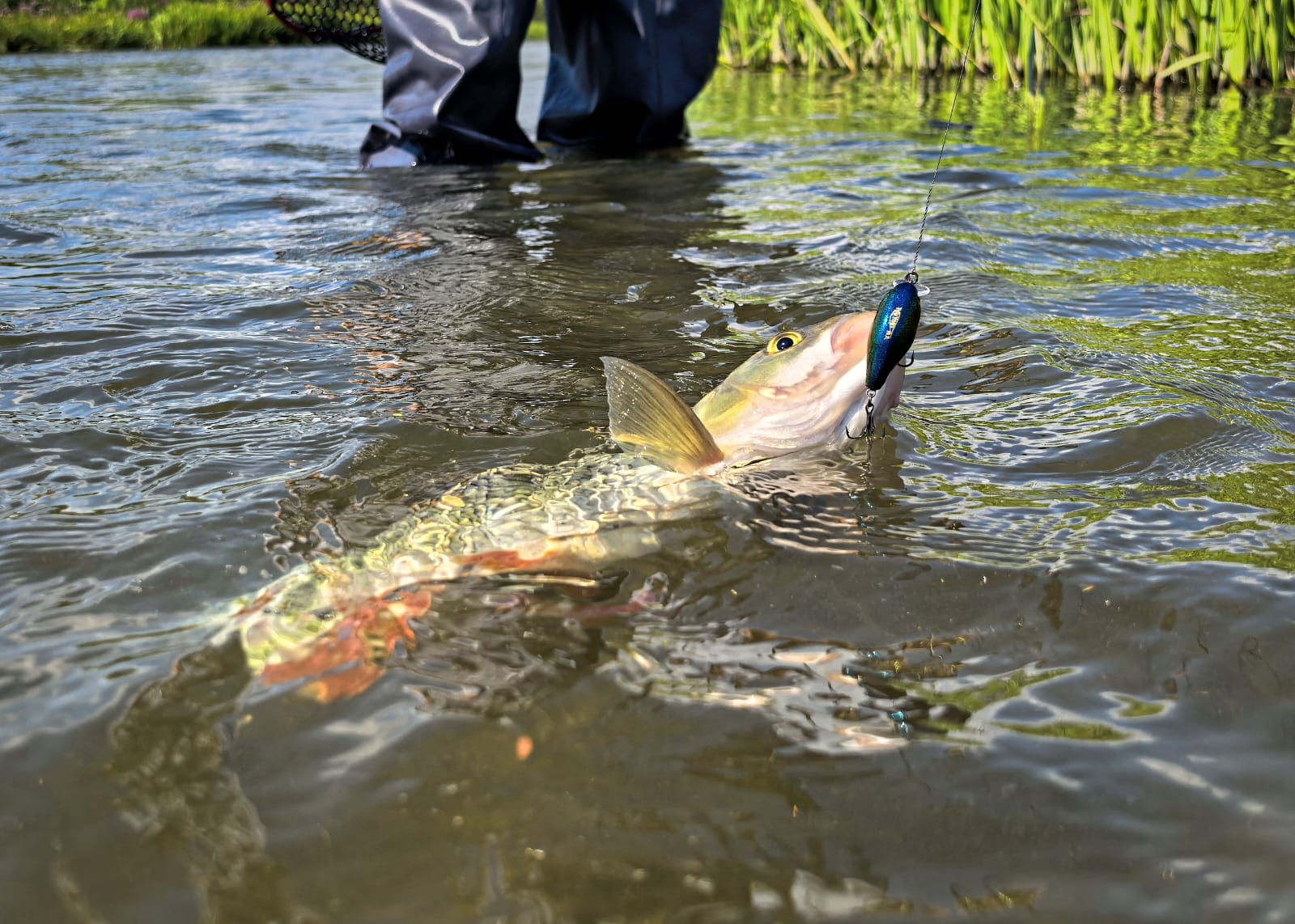 Ну а теперь главное, кого же можно ловить на TsuYoki Chef? Ну на самом деле, в условиях южных рек, практически всех, ну разумеется, хищных рыб. Это может быть жерех, голавль, судак, щука, окунь. Ну во всяком случае всех этих товарищей удавалось поймать при помощи этого воблера. Так что скучать точно не придется! А вот размер рыбы – каков? Могут это быть трофеи? Конечно могут! Так, например, встретить трофейного голавля или жереха при использовании TsuYoki Chef вообще не редкость! Посудите сами – объемная приманка, мощные и яркие колебания. А вот с остальными представителями – вопрос. Окунь – слишком жадный и любопытный, так что любой может клюнуть на TsuYoki Chef. Щука – просто слишком жадная. Судак – ну тут все очень неоднозначно. Ловил я его на TsuYoki Chef либо ночью, либо «на зорьках». Причем происходило это исключительно на голавлиных локациях. Поэтому разлет по размеру особей был абсолютно незакономерным – от «напильников» массой в 200 г, до приятных и увесистых рыб массой до 2 кг. Так что несмотря на свою яркую игру отфильтровать у TsuYoki Chef получается только «белого» хищника, да и то с большой вероятностью, но никак не 100%.