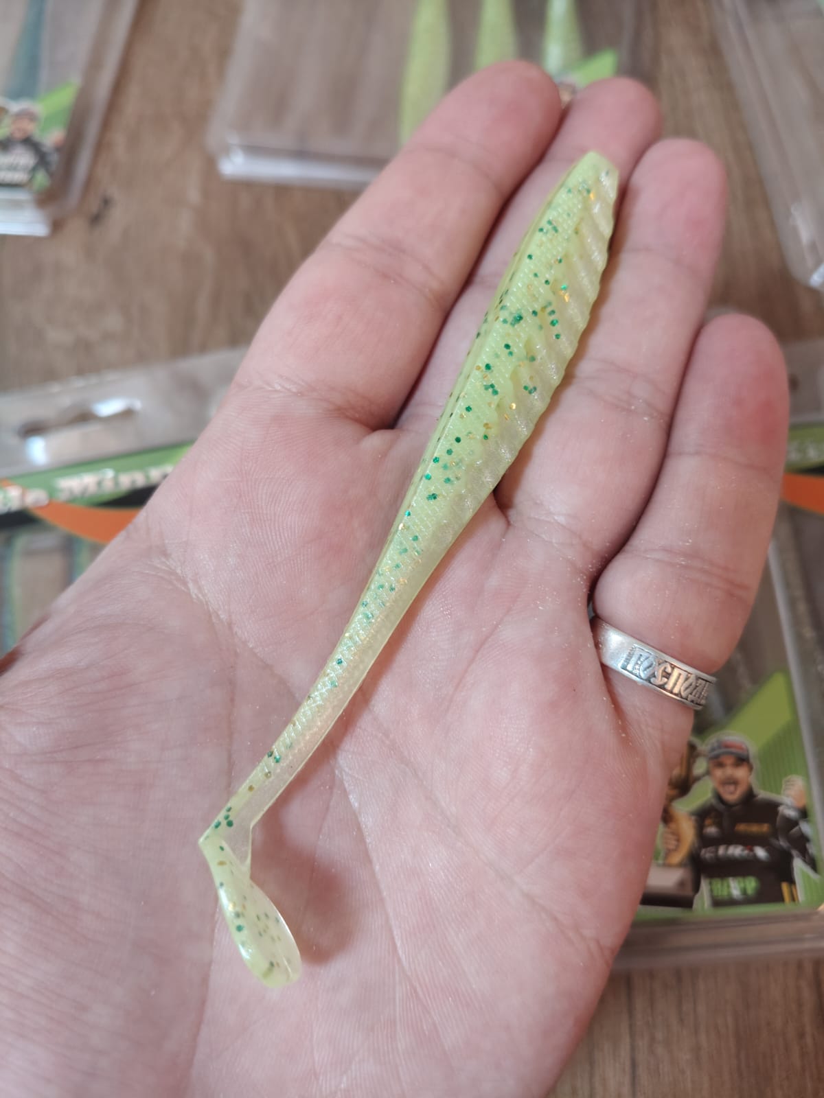 Ну у раз это одно семейство приманок, причем съедобных приманок, то логично предположить, что и силикон у Frapp Hustle Minnow будет по составу аналогичен. Как по мне, так на данный момент это золотая середина среди съедобный приманок в соотношении цена/долговечность. Силикон довольно мягкий, гибкий, пластичный за счет достаточного содержания в нем соли и аттрактанта. Причем аттрактант, обладающий тонким и приятным запахом, в небольшом количестве присутствует и в упаковке в виде маслянистой пленки, что позволяет продлить его срок службы, если убирать приманки обратно в упаковку. Все это дополнительно привлекает внимание хищника, особенно пассивного! Заставляет «поверить» в подлинность данного объекта, ну что это не приманка, а «еда». Но вот за что спасибо, так это за то, что гибкости и подвижности приманок Frapp добивается не увеличением количества соли, что сделает структуру материала еще более рыхлой и менее прочной, а за счет конструктивных решений!