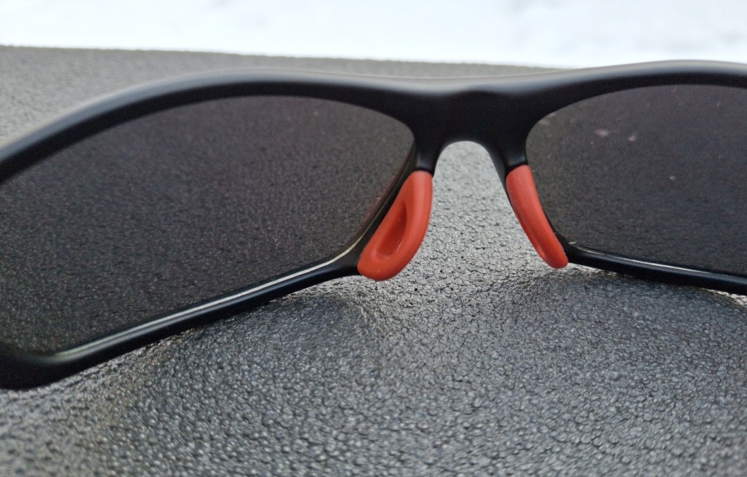 Далее, наличие классных носоупоров. Они в данном случае имеют интересную форму. И что самое главное, носоупоры из гибкой резины. Как итог, очки в районе носа не только имеют дополнительный контакт с ним, исключающий скольжение, но позволяют оказывать минимальное давление на нос. После долгого ношения очков никаких следов на носу не остается.