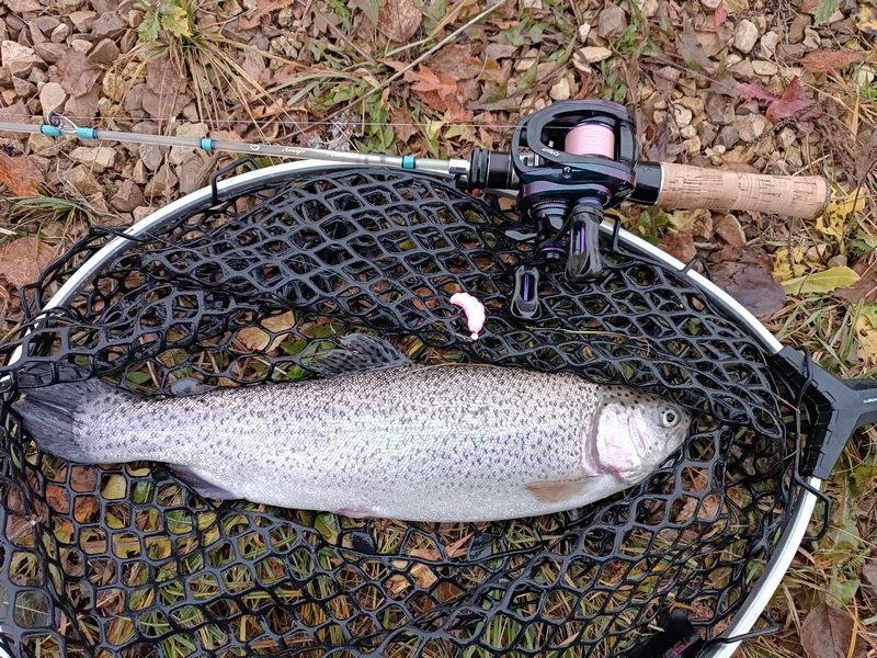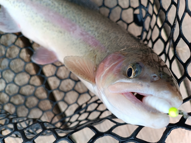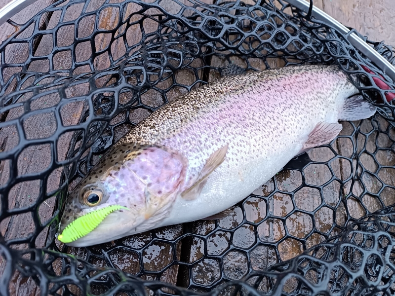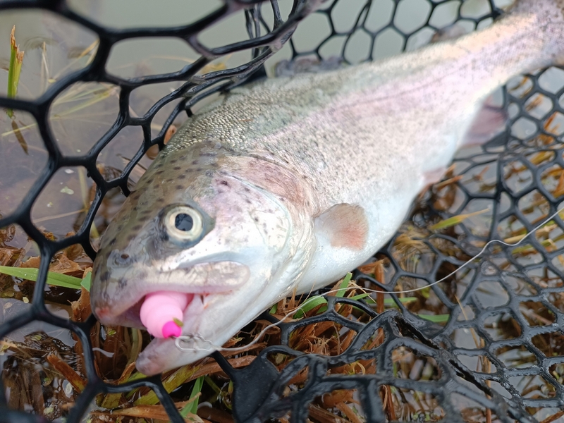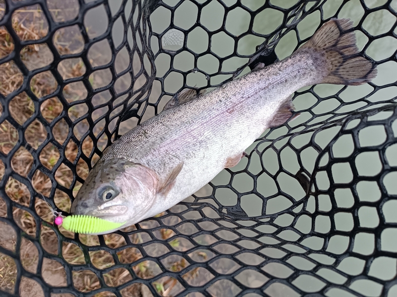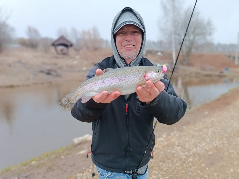 А вот поимка хорошей щуки была полной неожиданностью. Причем зацепилась зубастая за самый краешек рта и после продолжительной борьбы была успешно припаркована и извлечена из водоема. Конечно, такие хищницы на платниках не желательны, ибо и мелкую форель слопать могут, да и дорогостоящие приманки на флюре срезают одной поклевкой. Но все же, крючок выдержал и не «слил» трофей не смотря на отсутствие той самой бородки.