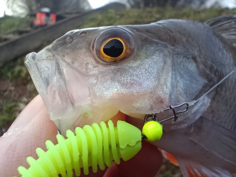 И не бойтесь, что рыба будет постоянно сходить из-за отсутствия бородки. Если контролировать сам процесс вываживания и не давать слабину – даже у такого активного и сильного бойца как форель практически нет шансов. Тем более конопатая, как правило, глубоко заглатывает приманки из «съедобного» материала и порой именно безбородость жала дает шанс отпускаемой рыбе получить минимальную травму и выжить. Еще одной фишкой Декой является наличие небольших насечек на цевье. Думаю, что они призваны улучшить фиксацию силиконового тела приманки на крючке и снизить риск сползания. Не знаю, не заметил ни плюсов, ни минусов данных элементов. Ну и завершает общую картину небольшой изгиб порядка 60 градусов, на котором и крепится вольфрамовая головка, и сравнительно крупное ушко. Кстати, по поводу цвета той самой головки. Тут, как и в рыбалке в общем, кто во что горазд…. Одни говорят, что цвет не влияет ни на что так как рыбы – дальтоники. Есть отдельный класс рыболовов верующих в значимость цветовой палитры. Лично мне просто нравится, когда джиг-головка контрастирует с приманкой. Но тут решать вам и только вам.