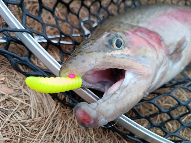 Четверка идет под крупные и объемные магготы, толстых червей или когда форель только прикусывает силиконку и надо сделать так, чтобы острие выходило в самом конце приманки. В остальных случаях справляется универсальная шестерка.