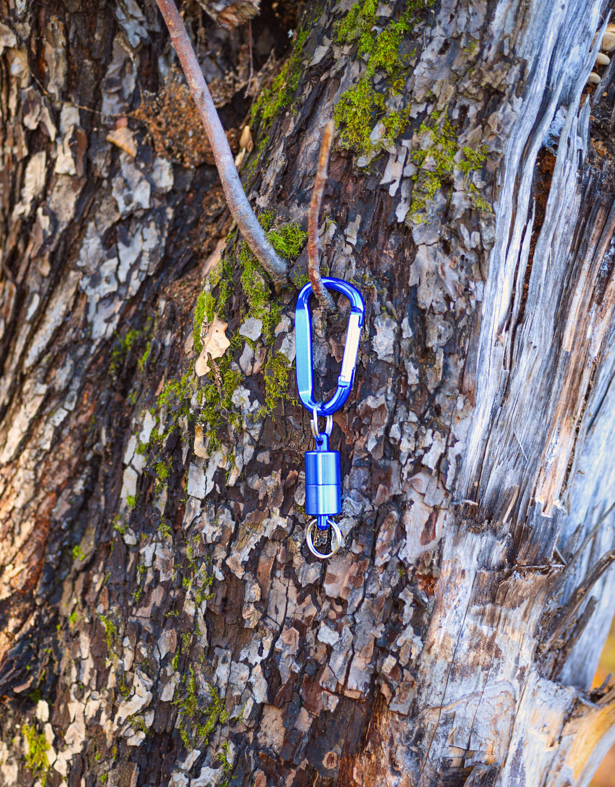 Важным моментом, для меня являлся вес самого магнитного держателя, поскольку, порой осуществляя длительные пешие передвижения на значительные расстояния – лишнее отягощение нам ни к чему.  Поэтому параметру у MCH-040BL (при длине 4,6 см без колец) также всё в порядке – около 84 гр. (без учета веса карабина). Что касается самого карабина в комплекте данного инструмента – лишним элементом его тоже не назовёшь, поскольку он позволяет осуществить удобное и быстрое крепление самого держателя к поясу брюк, петле рюкзака (сумки), специальным петлям на рыболовной одежде (например, у специализированных рубашек (курток) для нахлыстовой ловли есть такой элемент за спиной).