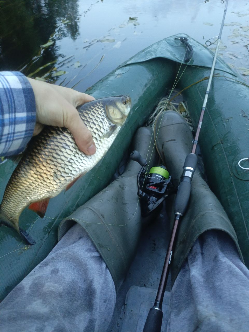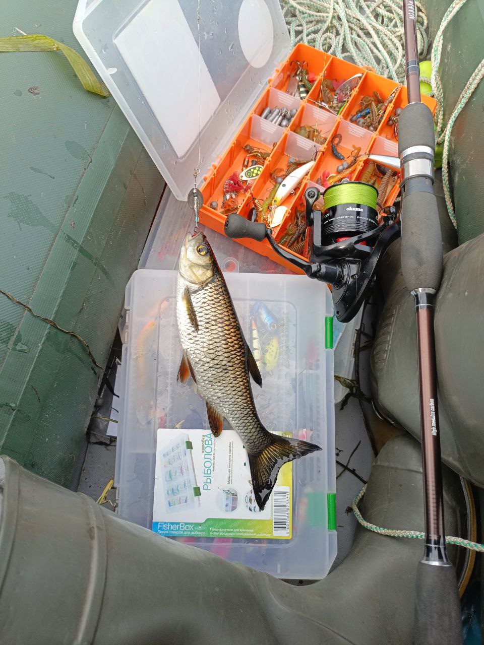 Голавлиный спиннинг с тестом до 9 грамм катушка также балансирует нормально. Довольно толстые для такой рыбалки шнуры (#0.8 и #1) оправданы крепкими условиями ловли - и Окумушка с ними прекрасно справляется. Выкорчёвывать лобастых из зарослей травы для неё не составляет особых трудностей.