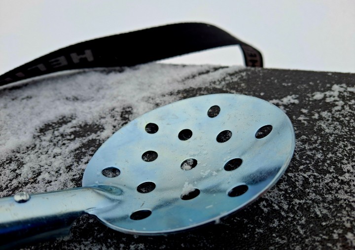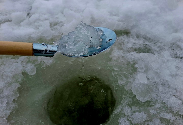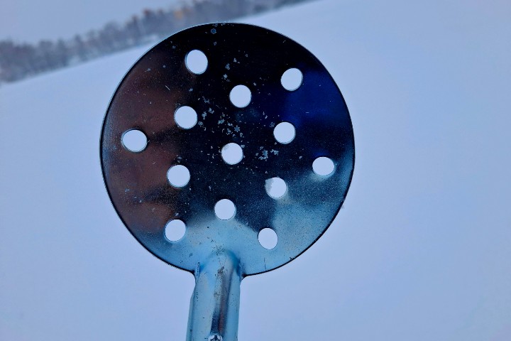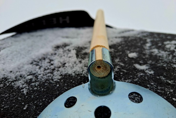 Намерзает ли наледь на металлическую часть? Не без этого. Но убирается лед быстро: постучал черпак о подошву сапог, и наледь отлетела. С пластиковым же черпаком, особенно в приличный мороз, такую операцию проводить было бы боязно.