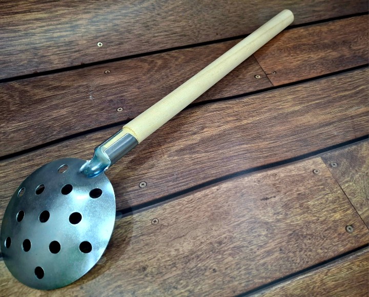 - Нет слабого  места в узле "ручка-ложка". Самое слабое место в металлических черпаках- это соединение между ручкой и ложкой. Здесь же ручка полностью деревянная, а значит проблема отсутствует априори. "Ложка" соединяется с рукояткой посредством тулейки, которая по толщине металла сопоставима с толщиной "ложки".