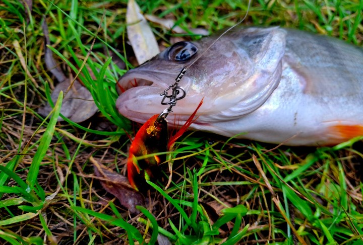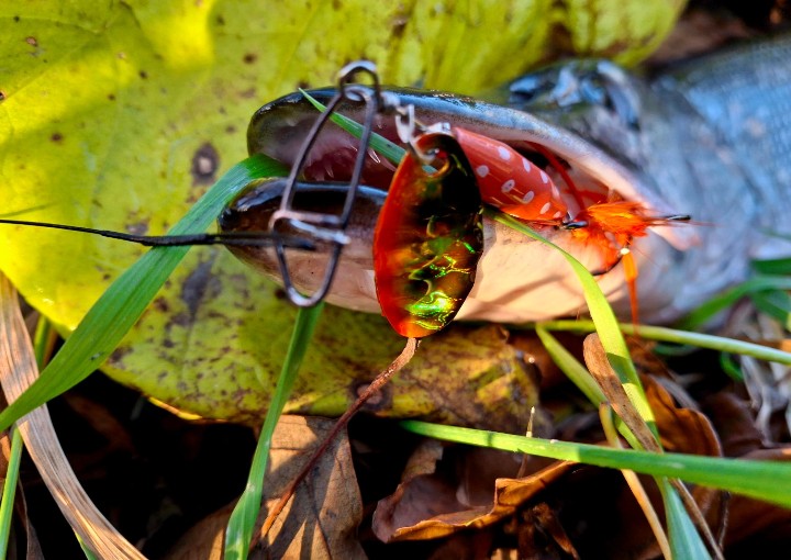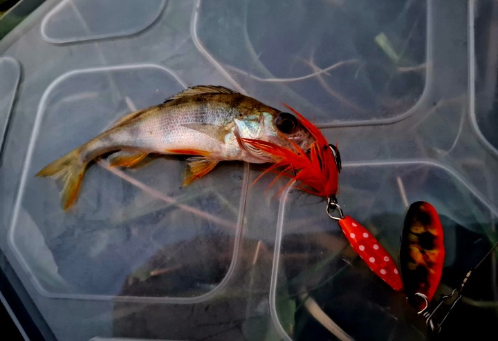 Будет несправедливо называть Abu Garcia Reflex Red щучьей приманкой. Как я понимаю, даже более старшие варианты в линейке не оснащены тройником, не подвластным окуню. У меня самая маленькая блесна из представленных, и на нее клюет микро окунь, размером с саму вертушку.
