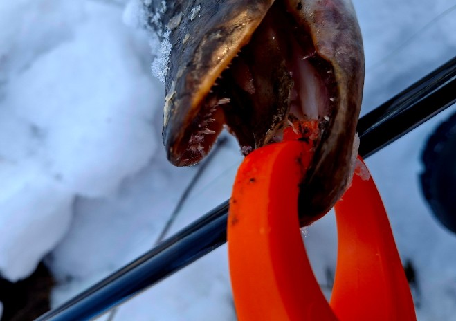 А ещё я обратил внимание, что щука на челюстном захвате ведет себя напорядок спокойнее, чем в подсаке. Будто гипнотизирует её данный инструмент. Что это даёт? А дает это дополнительную безопасность, ведь доставать извивающуюся с тройниками во рту щуку из подсака руками, и ту же щуку с тройниками, но спокойную на липгрипе- это две разных истории. И даже если щука на захвате извивается, то в этом случае намного проще гасить ее рывки, а значит и рыба, и рыболов меньше травмируются. Если вообще травмируются.