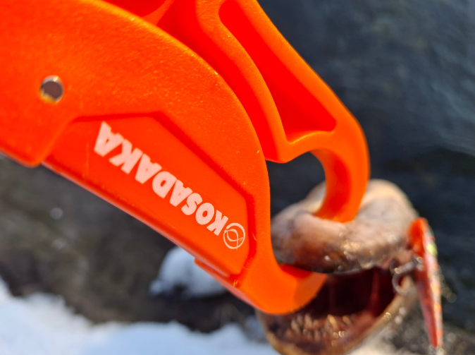 - Захват рыбы происходит максимально деликатно, но надежно. Губы челюстного захвата Kosadaka не протыкают пасть хищника, а лишь плотно прижимаются друг к другу. Никаких острых краев и граней, прижимная поверхность максимально гладкая.