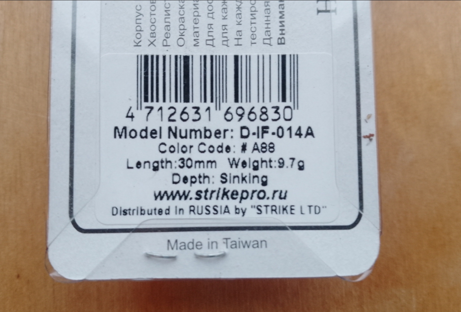 ... на обратной стороне которой имеется вся необходимая информация об этой приманке.