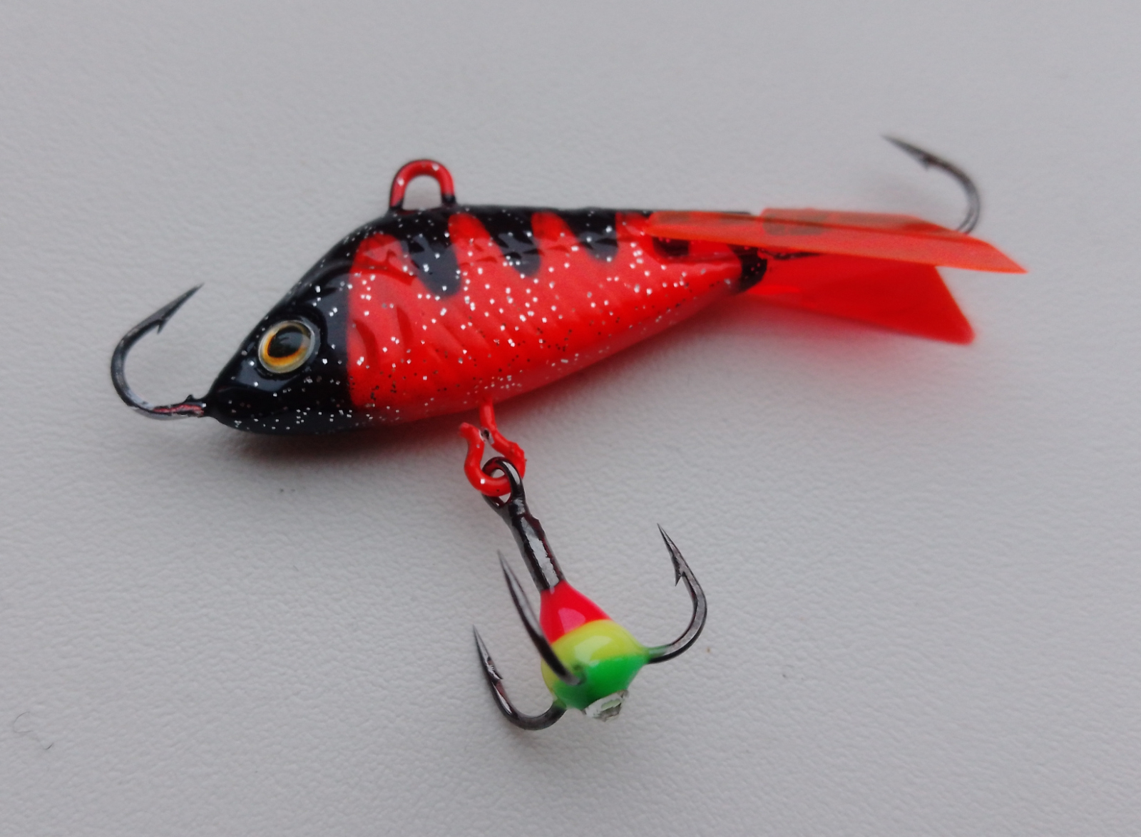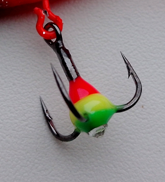 Лично для меня было приятным нюансом, что в изначальном варианте поставки балансир Strike Pro Shifty Shad Ice 30 комплектуется тройничком с разноцветной капелькой.