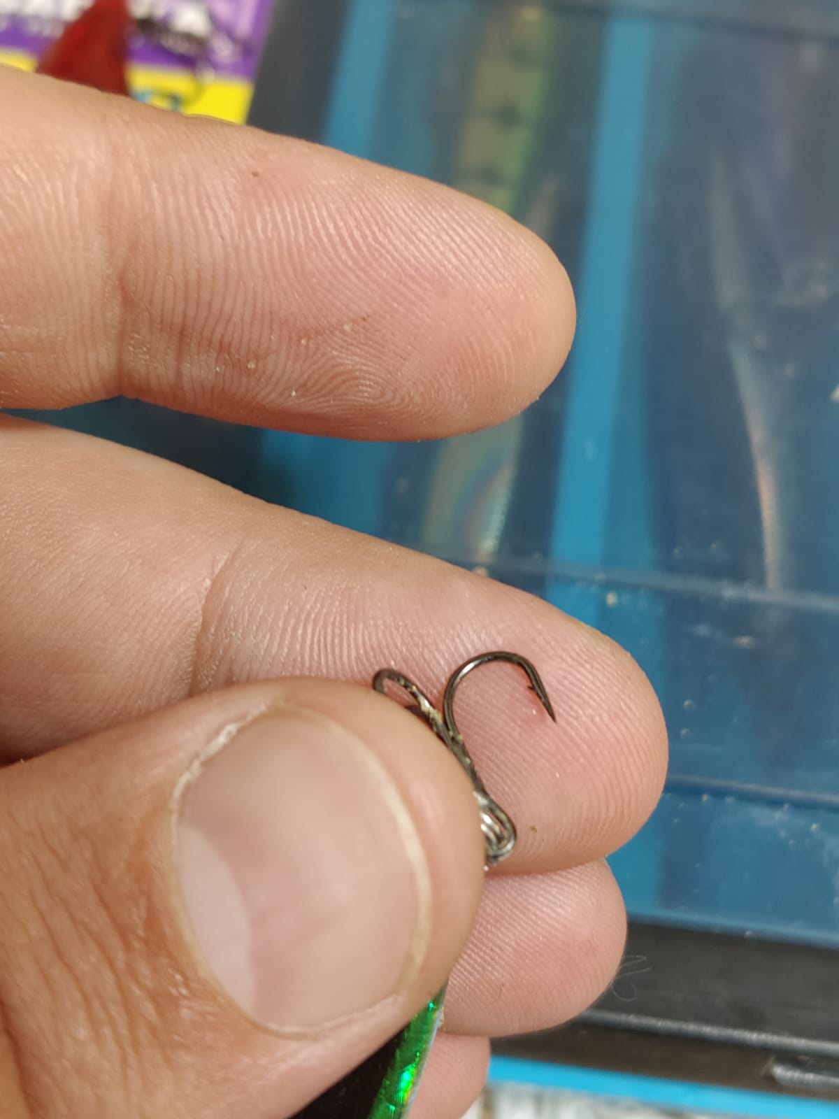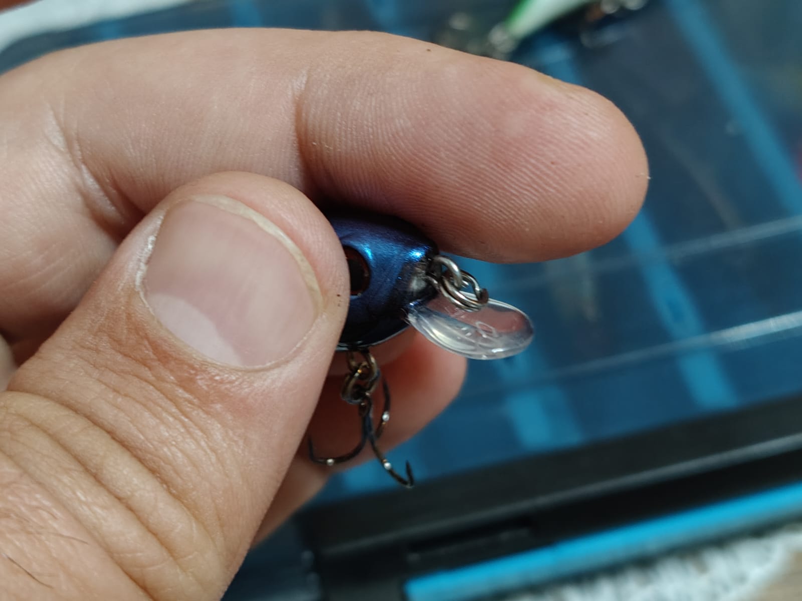 Итак, определились, что это небольшой крэнк с маленьким, но достаточно объемным телом, небольшой, гармонично выступающей лопаткой. Но все ли так гармонично у TsuYoki Itteki? Ну как по мне, так полностью. Небольшие тройники не особо выделяются на фоне приманки, тем самым, не привлекая к себе дополнительного внимания. Ну а в бонус к этому, благодаря их точному взаимному расположению, они не пересекаются между собой. Несмотря на крохотный размер крючки у TsuYoki Itteki могут похвастаться своей стойкостью и выносливостью – не разгибались, не ломались, в общем – не подводили. Ну а их проникающая способность — это отдельная вообще песня! С рыбой там понятно – они острые, плюс подсечка – рыба садиться как надо. Ну а чтоб было меньше сходов – есть крепкая и яркая бороздка стопор, которая уменьшает количество сходов. Но одно ваше неверное движение, неосторожное обращение с рыбой и уже этот маленький тройник придется доставать из собственных пальцев, что очень и очень больно и неприятно.