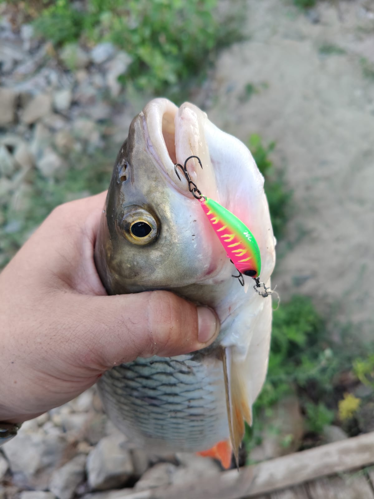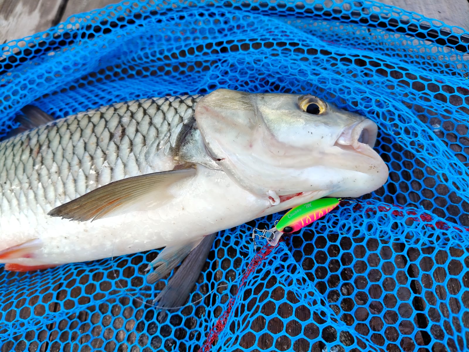 Да, бывало, попадалась небольшая щучка, попадались и микросудачки, частенько в прилове бывает окунь, однако целенаправленно использую Jackall Chubby Minnow 35 я для ловли жереха, голавля и язя. А вот тут наш малыш способен творить чудеса! Да и встреча с трофейными экземплярами «белого» хищника вообще не редкость, я бы даже сказал обыденность. Так что фрикцион всегда стоит держать максимально ослабленным. Да и трофейных окуней доводилось ловить на этот воблер. С судаками и щуками (слава Богу) трофейного размера мои Jackall Chubby Minnow 35 не встречались.