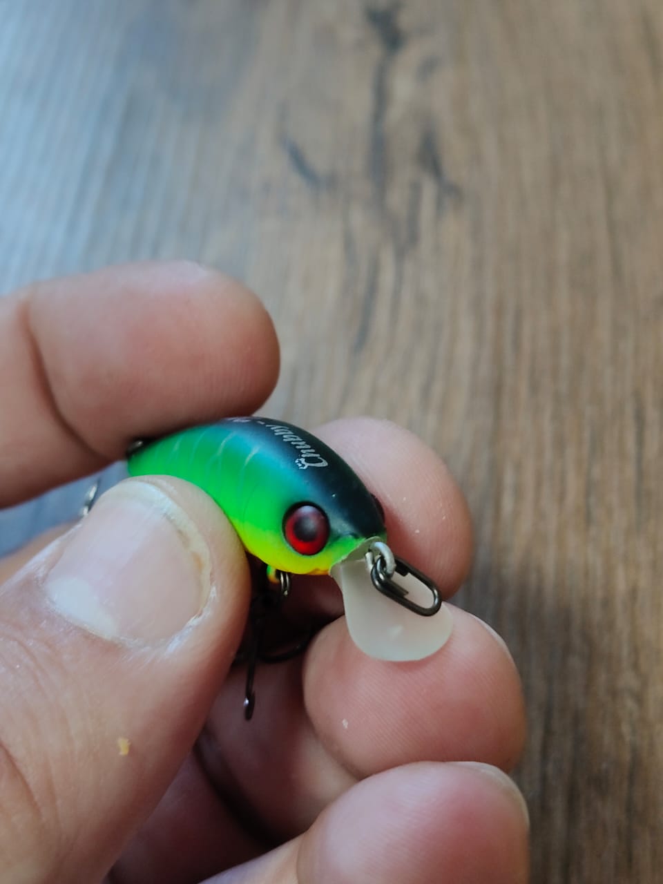 Да, миниатюрная приманка, да с небольшим рабочим диапазоном. Тут невольно возникает вопрос о готовности к встрече с трофеем, о ее пределах возможностей, если так позволите выразиться. А вот тут аналогии с привычными «Чабиками» напрашиваются сами собой. К монтажным петлям и заводным кольцам вопросов нет, никаких нет и совсем нет. За все время взаимодействия с приманкой они не то, что ни разу не подвели, они даже не приняли никакой деформации! А вот с крючками история совсем иная. Их размер еще меньше, чем у крэнков этого семейства, как показала практика – прочность тоже пострадала. Не стоит удивляться отломанным или разогнутым крючкам после вываживания крупной рыбы. Так что стоит иметь в запасе запасные тройнички.