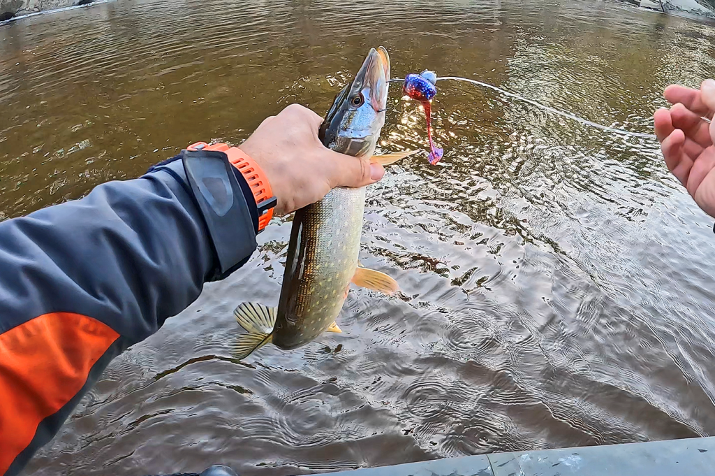 При этом в качестве способов ловли использовал с Kosadaka Wave Shiner 125 только два: классическую джиговую рыбалку и факультативом слабо огруженный вариант при ловле в траве и на небольшой глубине. Для разнесенных монтажей подобный размер силикона мне не нравится.