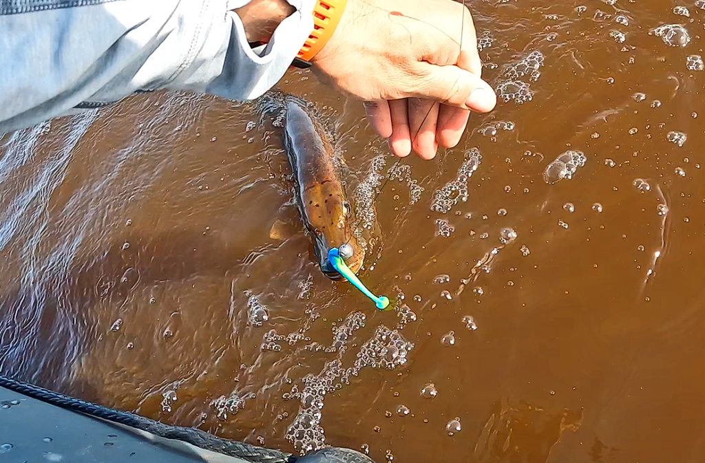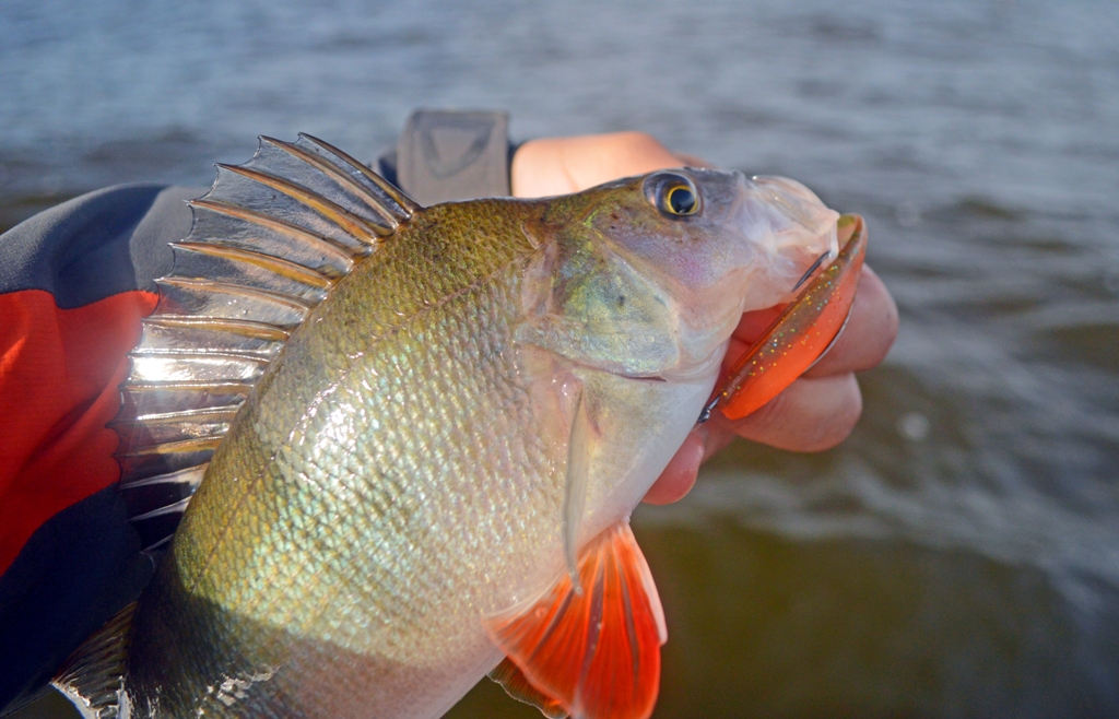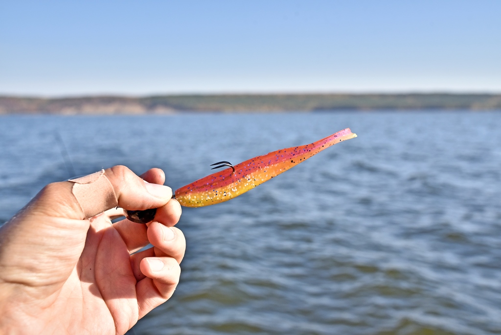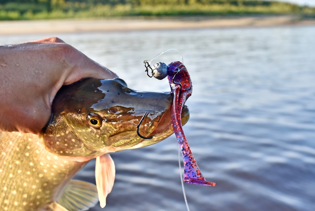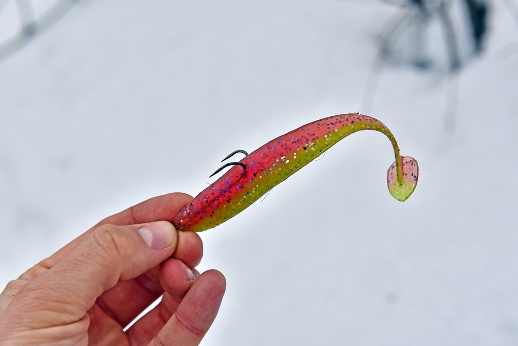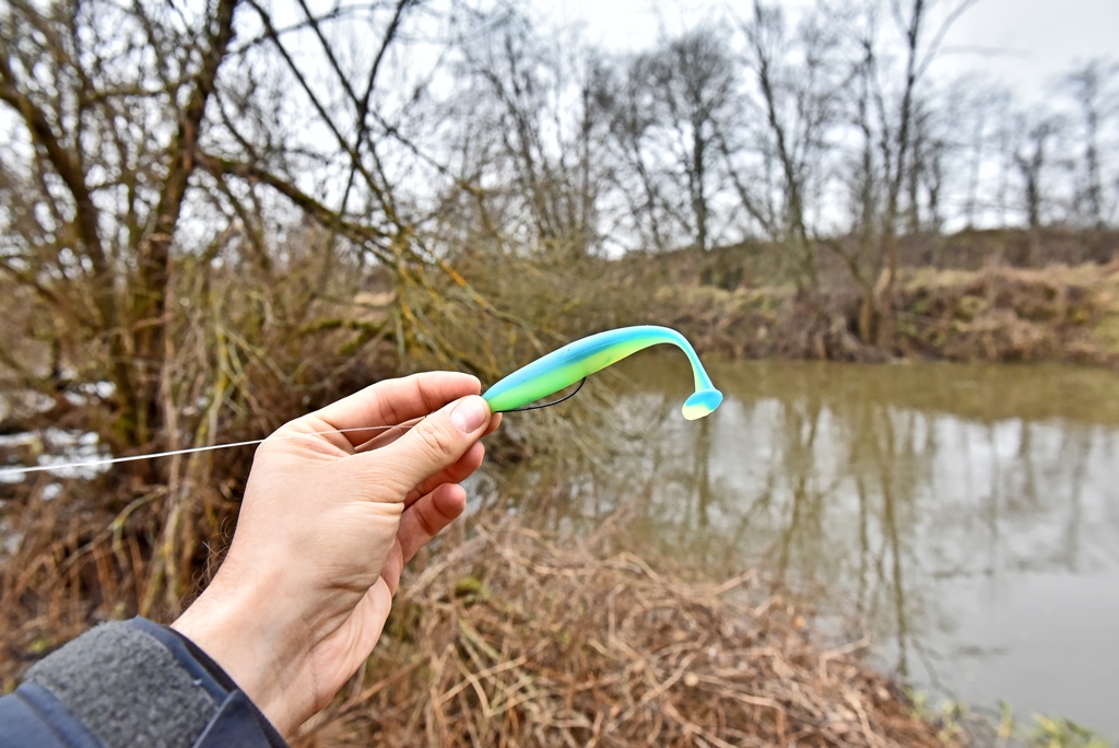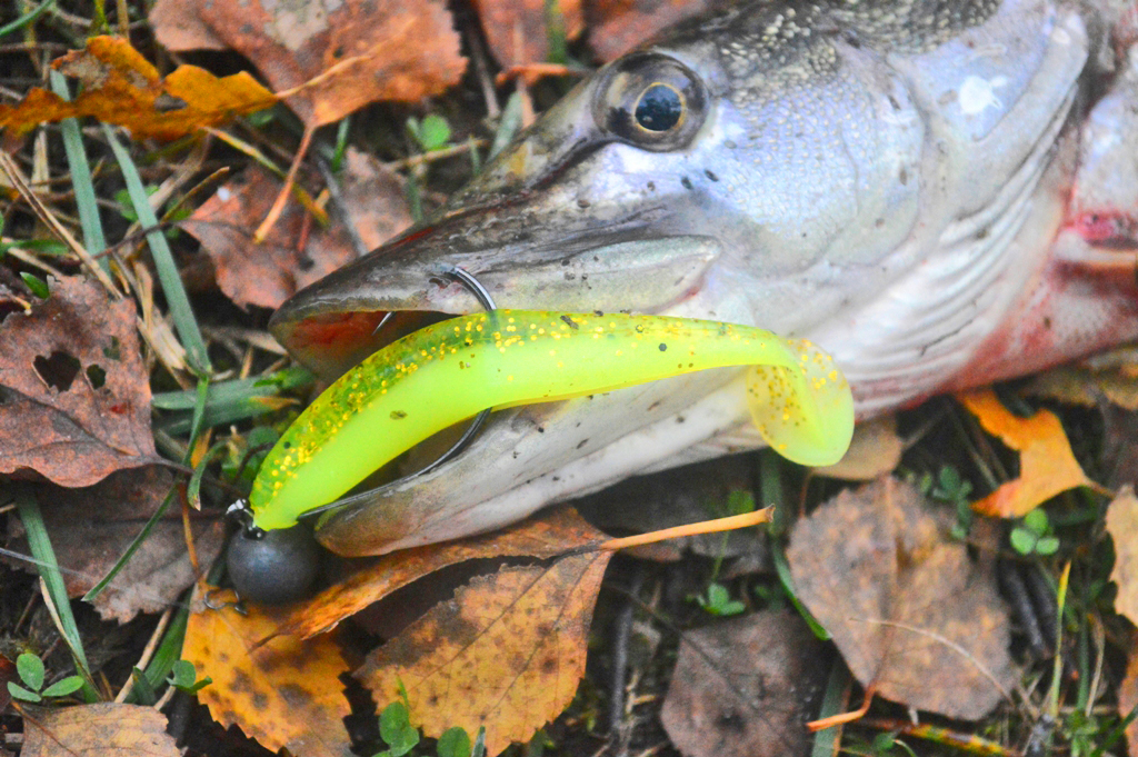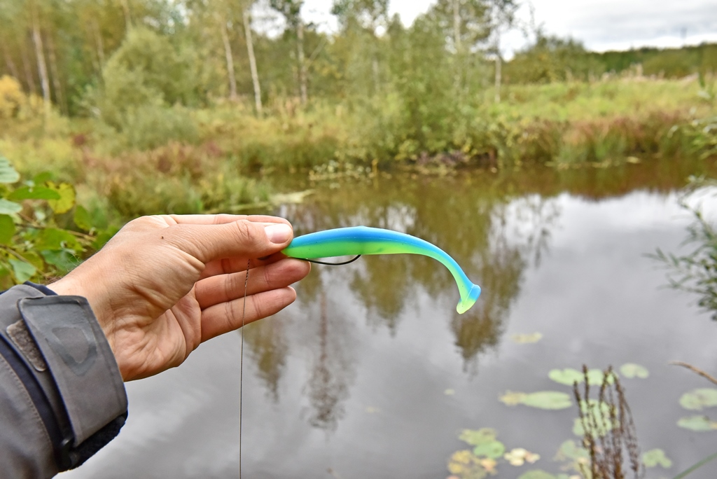 Размер резины предопределяет основную добычу - это судак и щука, которые в равной степени хорошо реагируют на Wave Shiner.