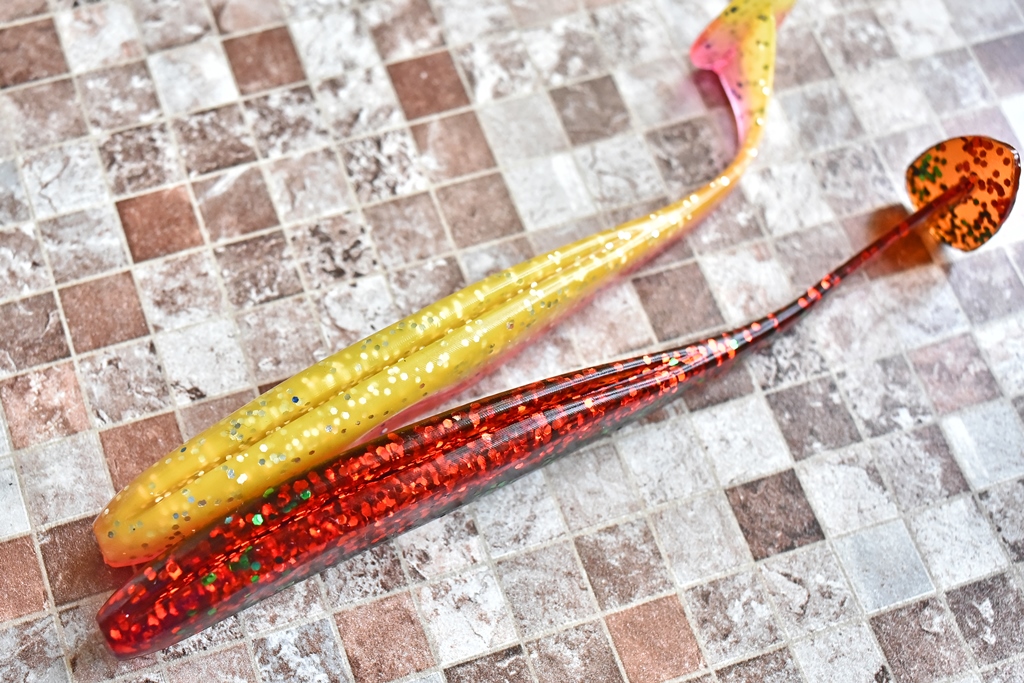 Модель резины от Kosadaka развивалась постепенно и началась с приманки длиной 95 миллиметров, она была погранично съедобная и временам имела огрехи в исполнении, но притом отменно ловила!