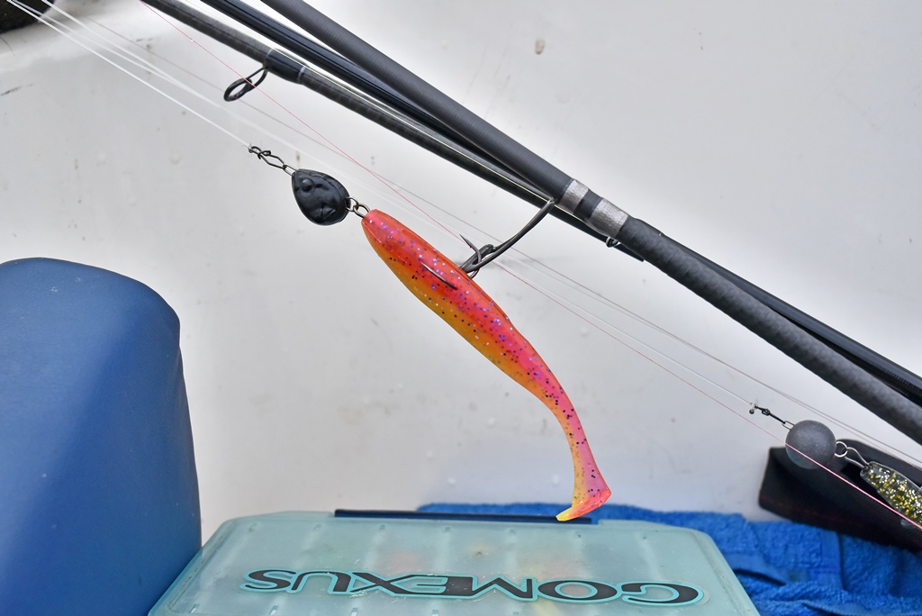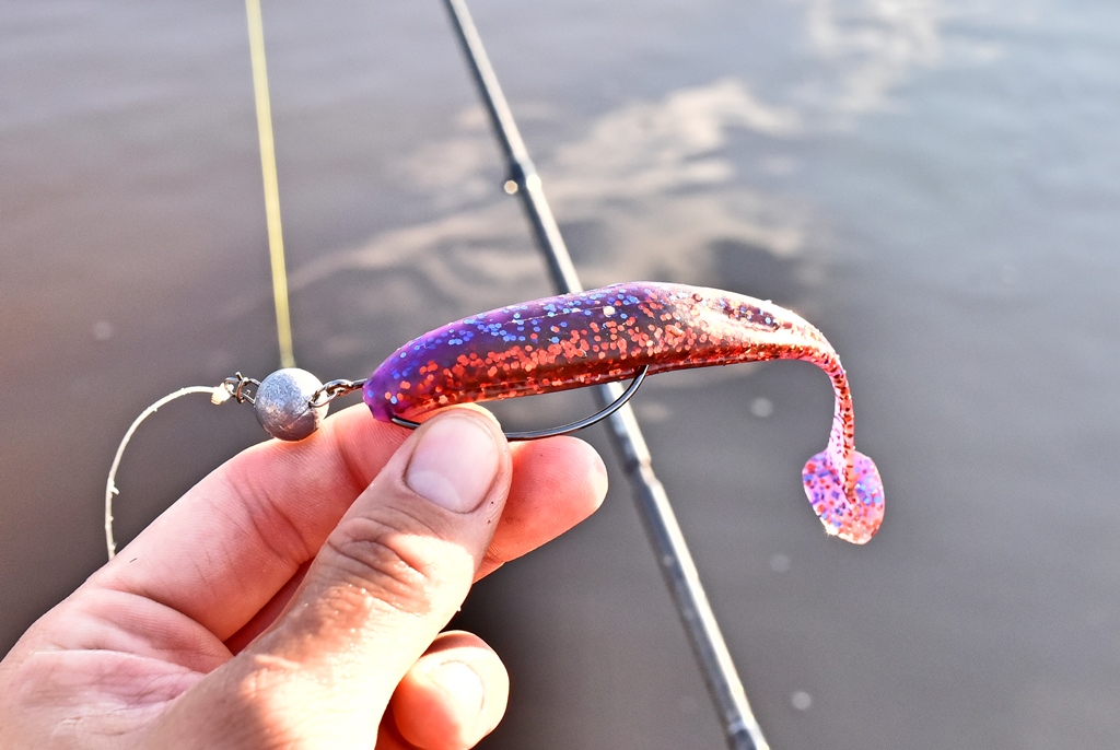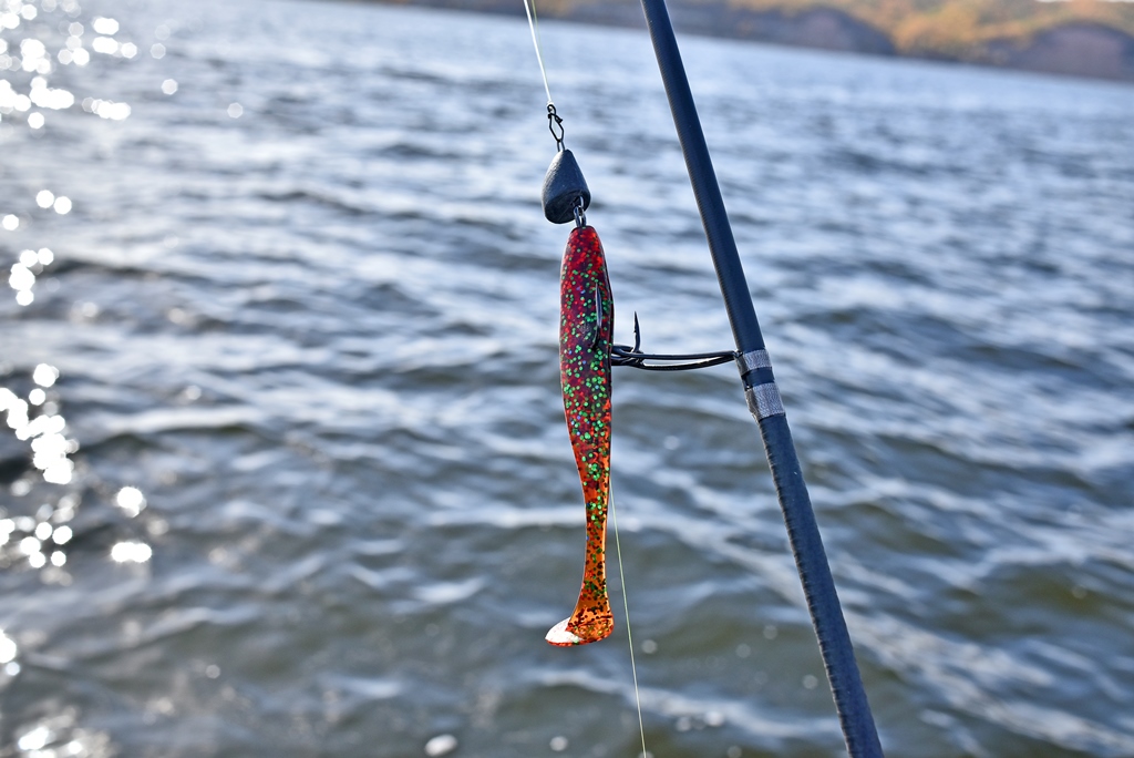 На мой взгляд, именно в традиционной джиговой ловле какой бы монтаж резины не был (шарнирный или жёсткий) данный виброхвост наиболее эффективен.