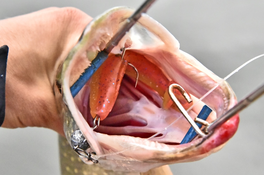 Если место ловли не предполагает большого количества зацепов, то имеет смысл поставить двойник. Wave Shiner 125 отлично монтируется на данный тип крючков, потому что у него достаточная масса силикона для крепкой фиксации на крючке без лишних повреждений для резины.