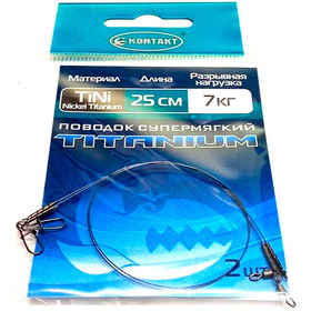 Благодаря применению специально разработанного сплава никеля и титана, поводок Контакт Nickel Titanium имеет непревзойденные эластические свойства. Также применяется специальное закаливание материала поводка. В результате, поводок пытается занять прямолинейное положение, что исключает перехлесты и «неправильную» работу приманки. У вас всегда будет эластичный прямой поводок, без изгибов, изломов и спиралей.