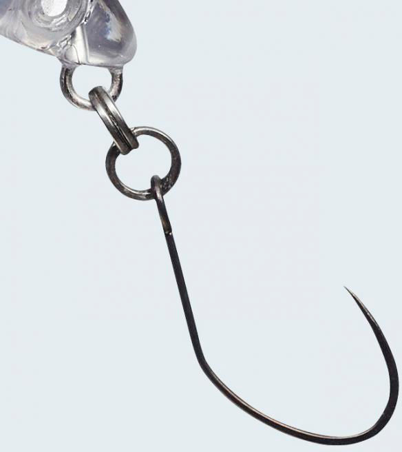 ■ Колечко для крепления и заводные кольца Заднее крепежное колечко (ая) выполнено вертикальным и используется в связке с двумя заводными кольцами, чтобы крючок располагался вертикально. Двойное соединение увеличивает степень свободы, снижая количество сходов. Кроме того, крючок отдаляется от корпуса, что минимизирует зацепы сзади.