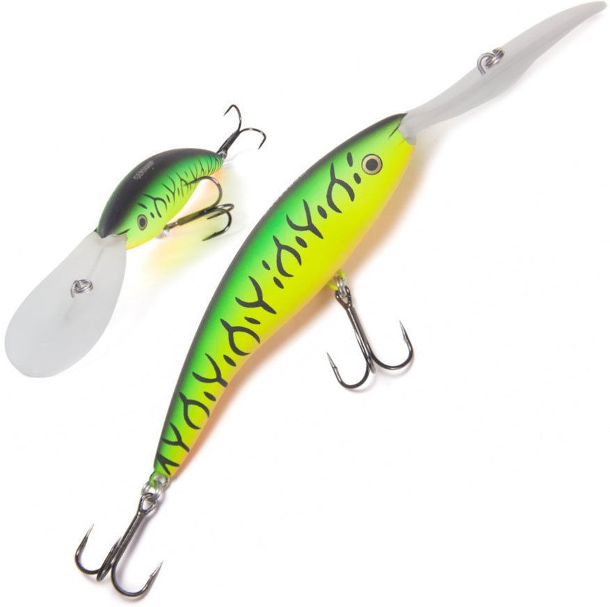 Глубоководный воблер типа минноу. Особенности: длинная и узкая лопатка для глубокого погружения; положительная плавучесть, помогает обходить препятствия; оснащена двумя острыми тройниками; в корпус встроена шумовая камера, которая усиливает эффект широкоамплитудной игры. высокая уловистость, игра, имитирующая движения живой рыбы; устойчивость к сильному течению и способность оставаться привлекательным для рыбы даже в мутной воде. Лучше всего подходит для троллинга, в котором изменяя длину лески и скорость проводки, Вы сможете изведать любые глубины. Искусственный малек вызывает интерес у щуки, жереха и судака. На него реагируют рыбы лососевых пород. Так как приманка довольно юркая, прежде всего она ориентирована на хищника, пребывающего в активном состоянии. Модель наделена хорошими полетными характеристиками. Несмотря на отсутствие системы дальнего заброса, ее можно использовать для ловли с берега.